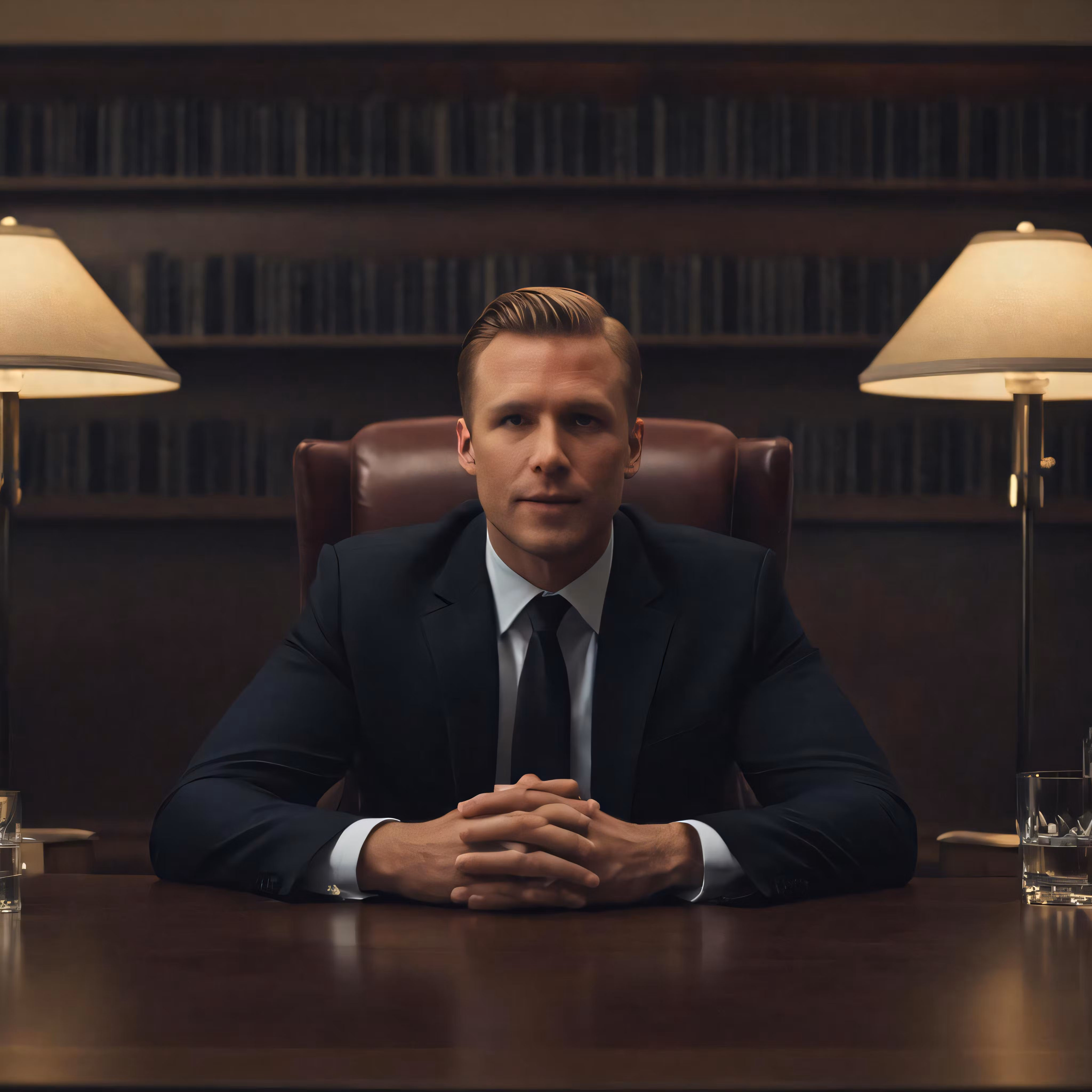High resolution picture, free to use, a man in a suit and tie sitting at a table with a glass of water