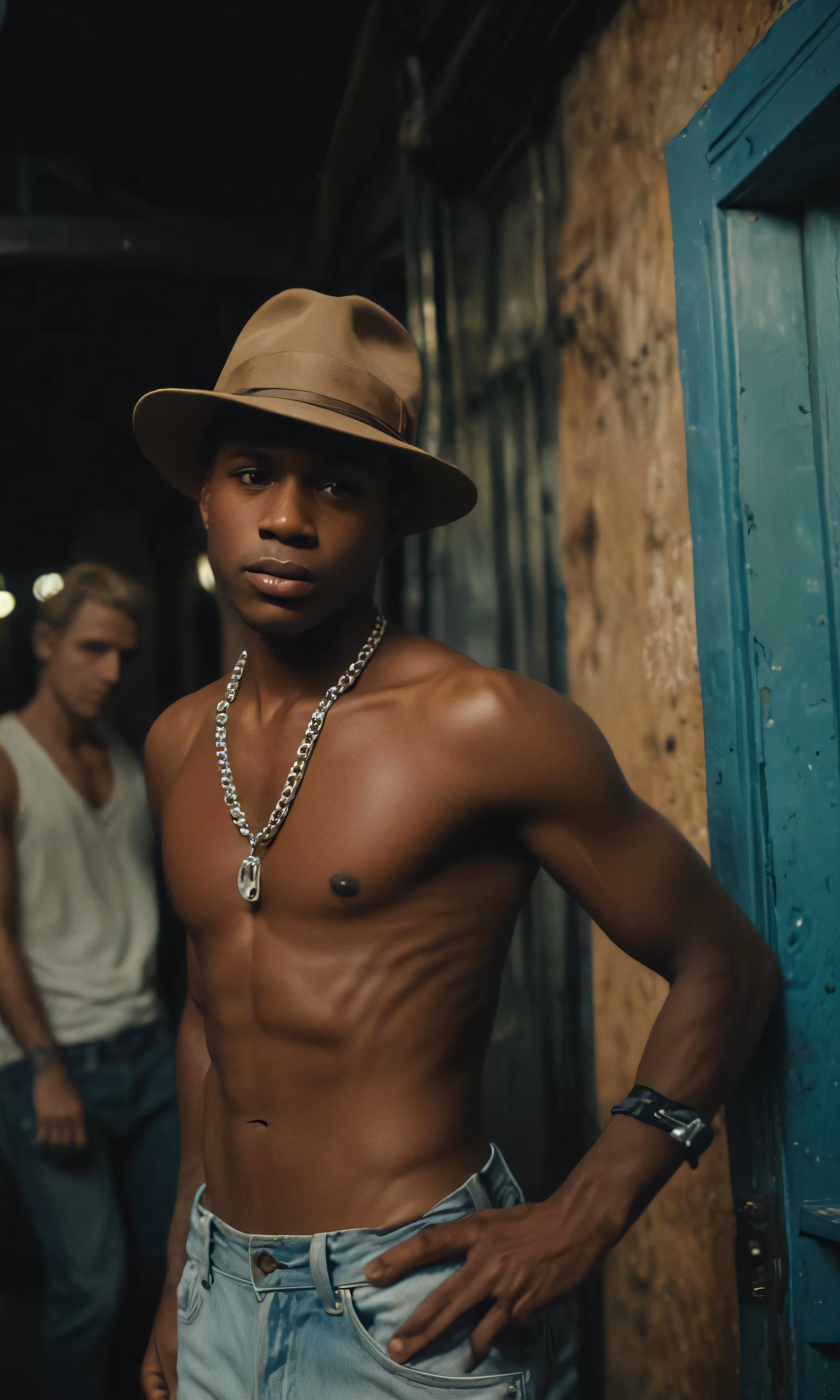 High resolution picture, free to use, a man in a tan hat and jean shorts poses in an alleyway