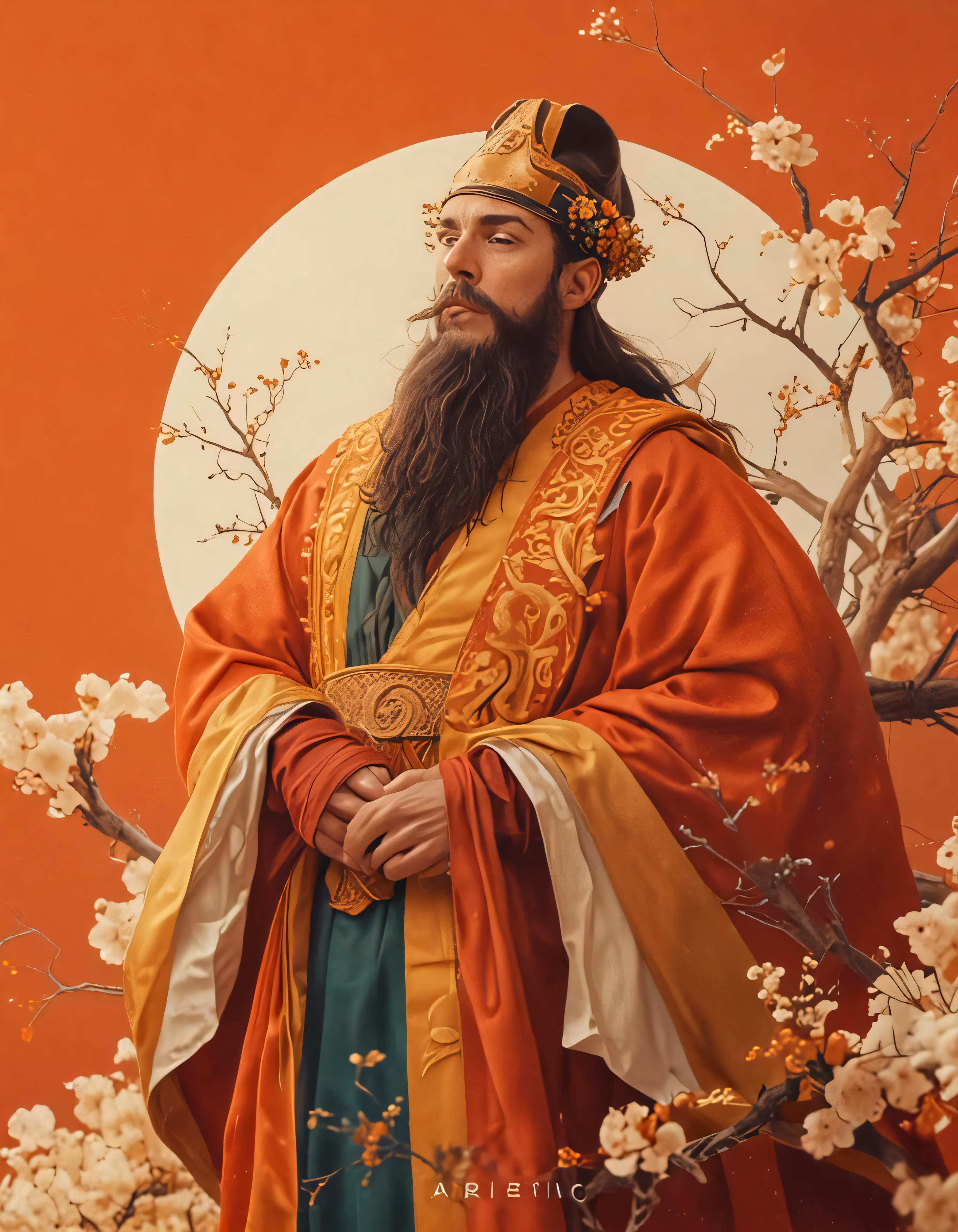 High resolution picture, free to use, a man in an orange and yellow outfit standing with his arms crossed