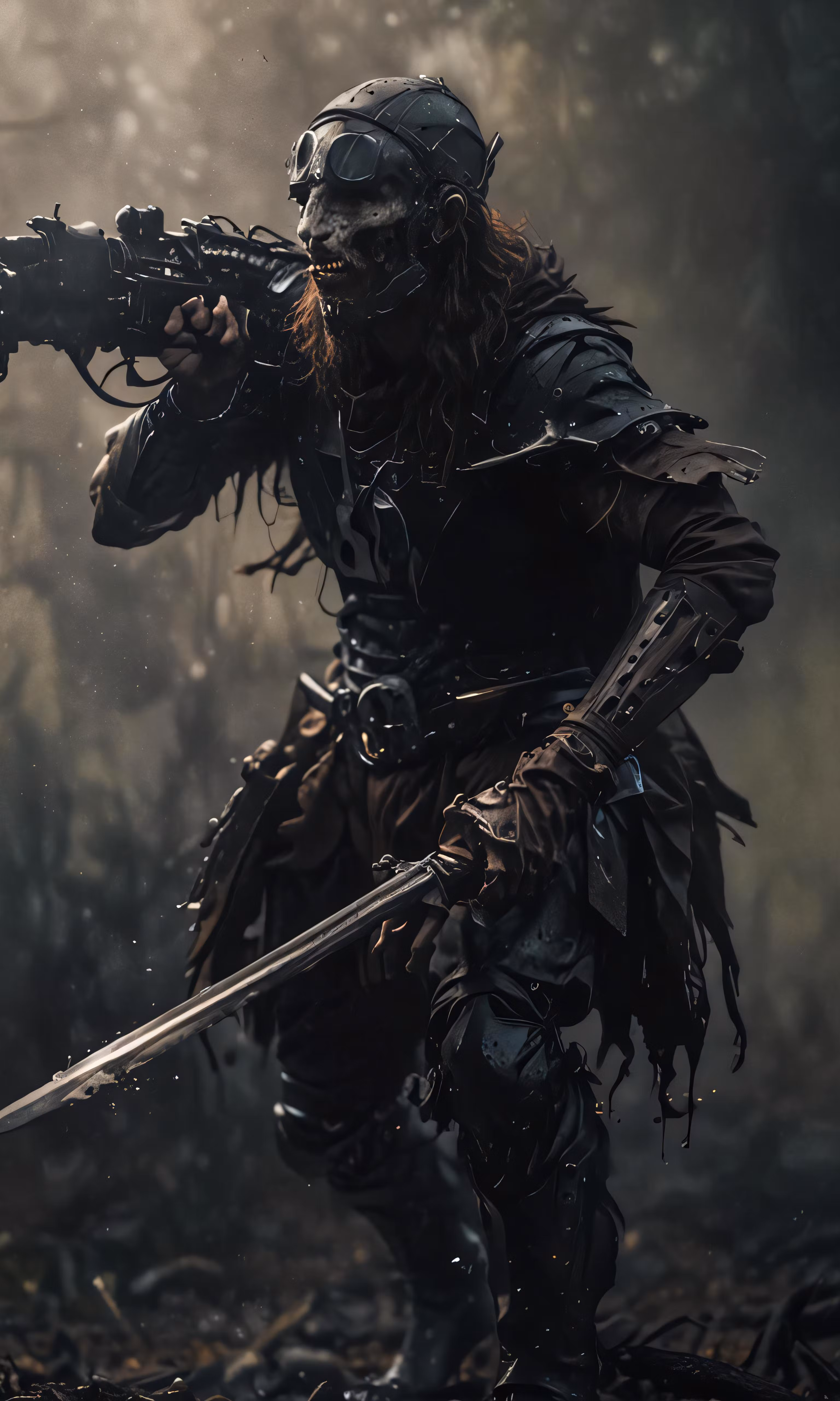 High resolution picture, free to use, a man in armor with a rifle and gun