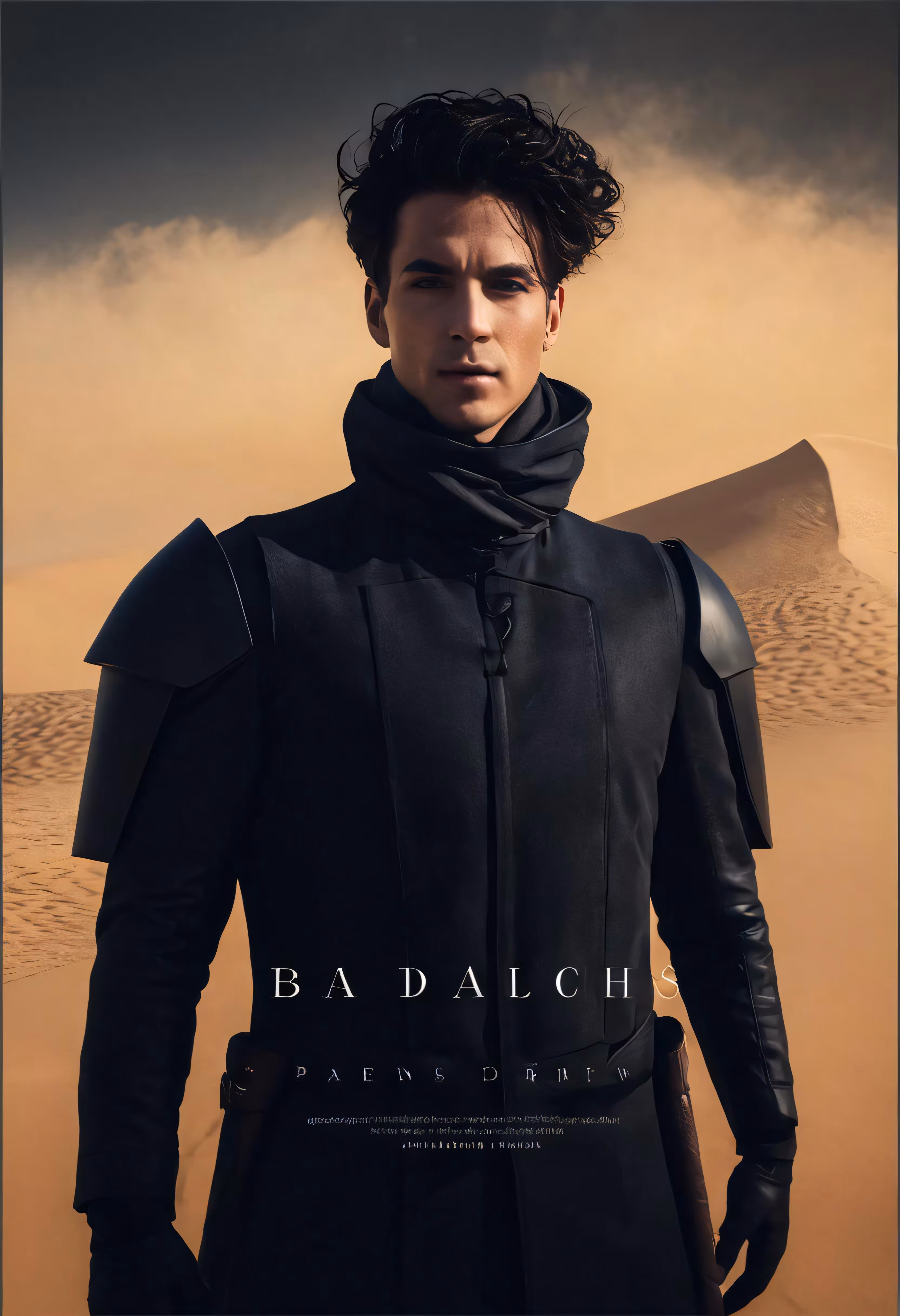High resolution picture, free to use, a man in black clothes in front of a desert