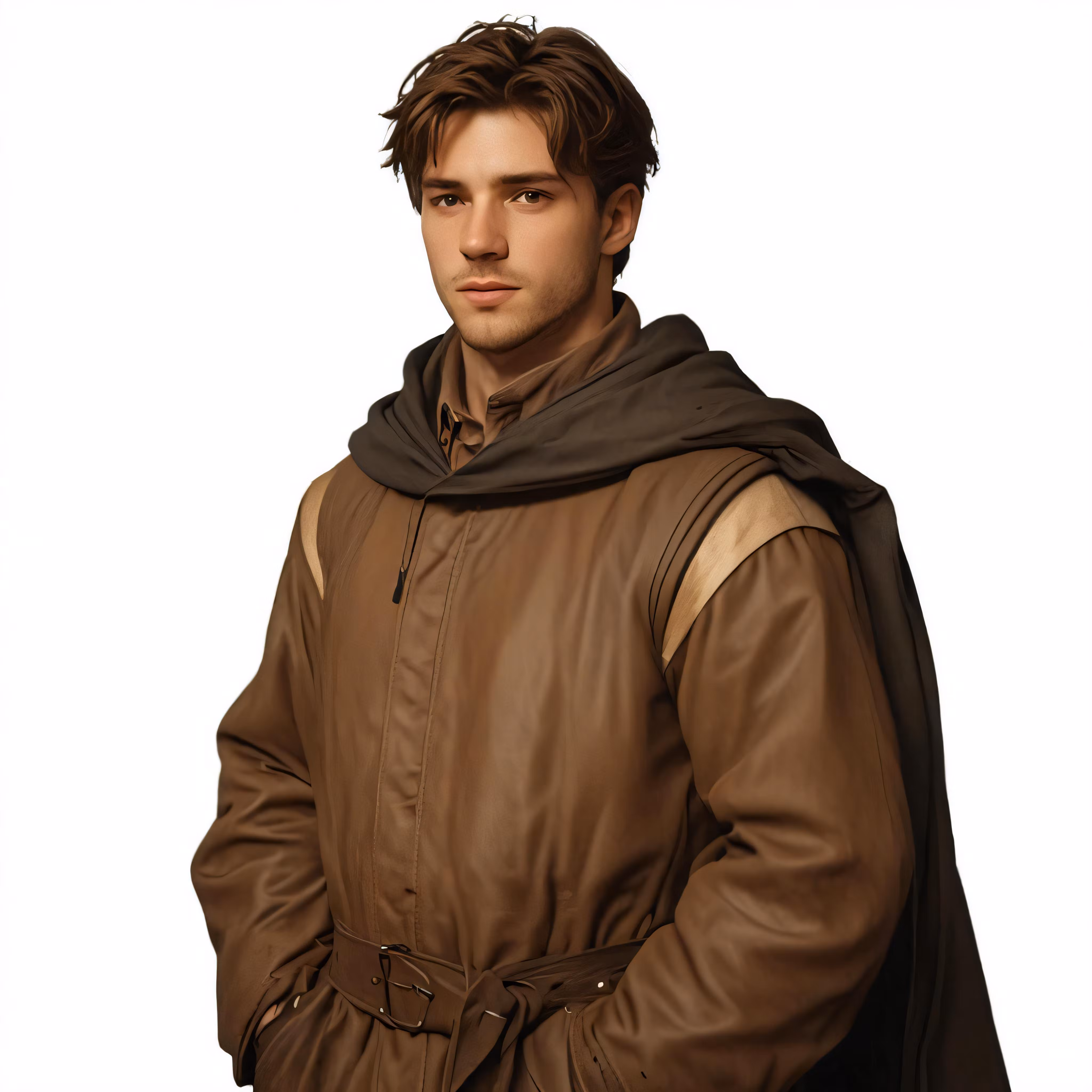High resolution picture, free to use, a man in brown is standing on a white background
