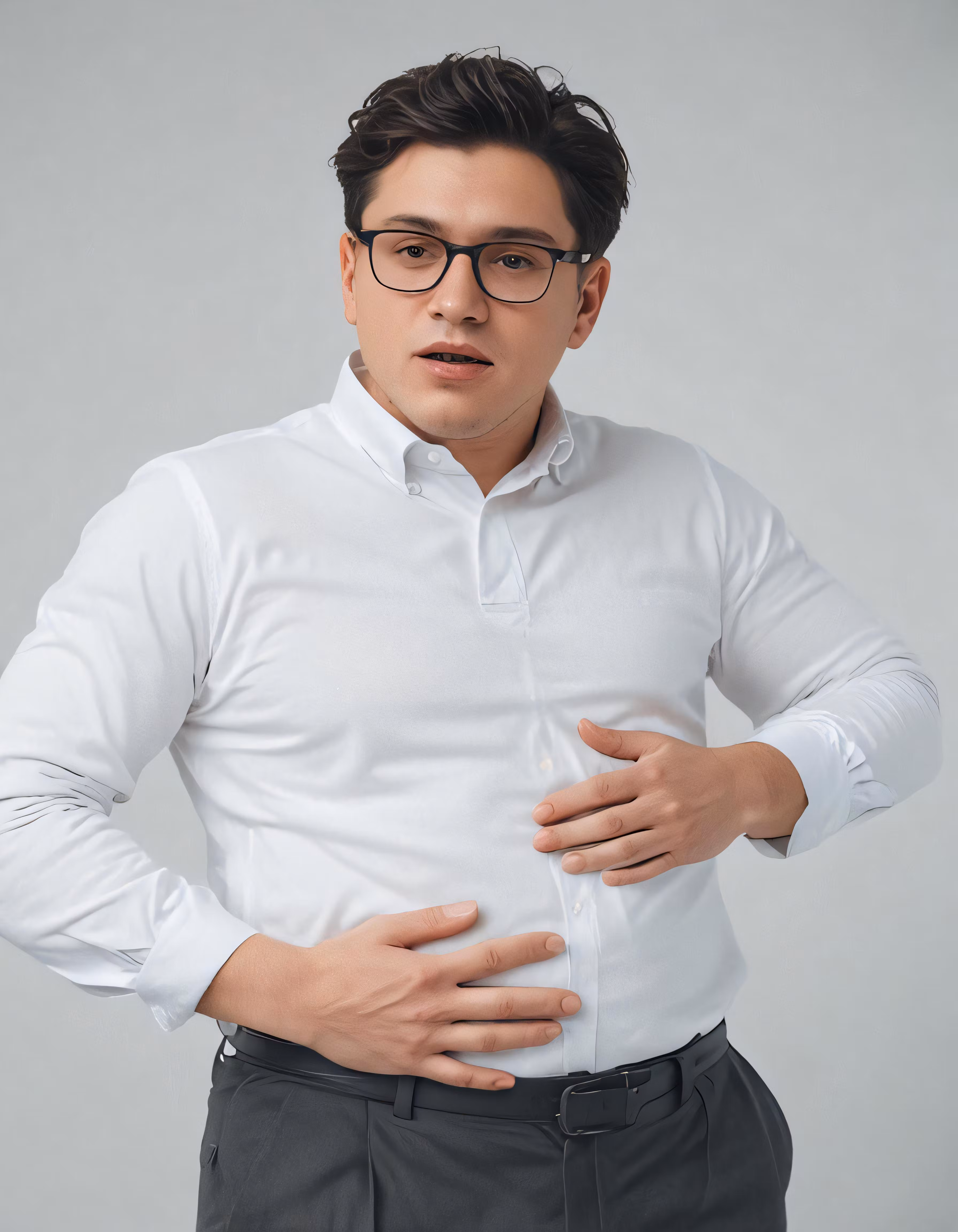 High resolution picture, free to use, a man in glasses, with his stomach exposed