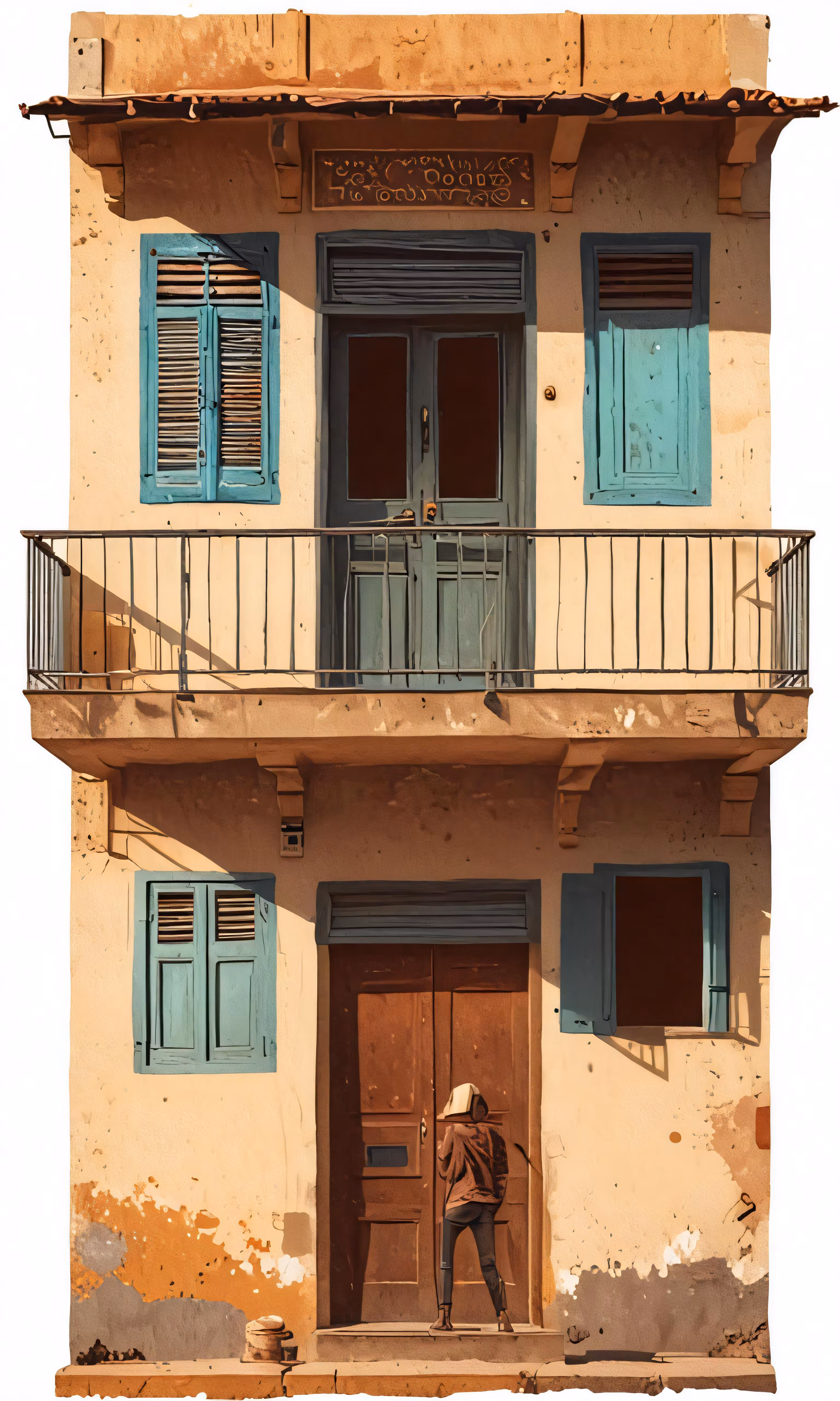 High resolution picture, free to use, a man in hat and coat entering a doorway