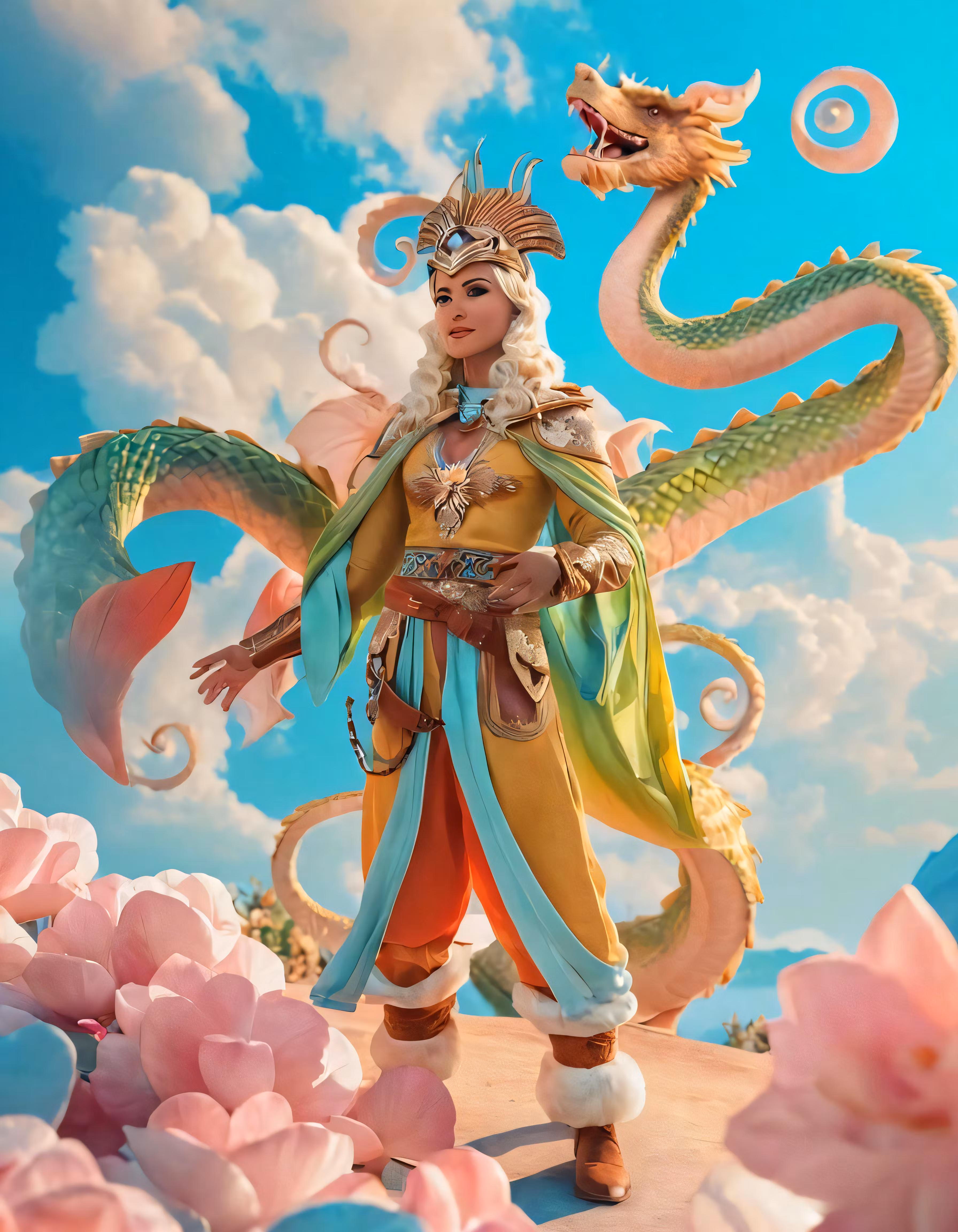 High resolution picture, free to use, a man in oriental costume standing in front of flowers