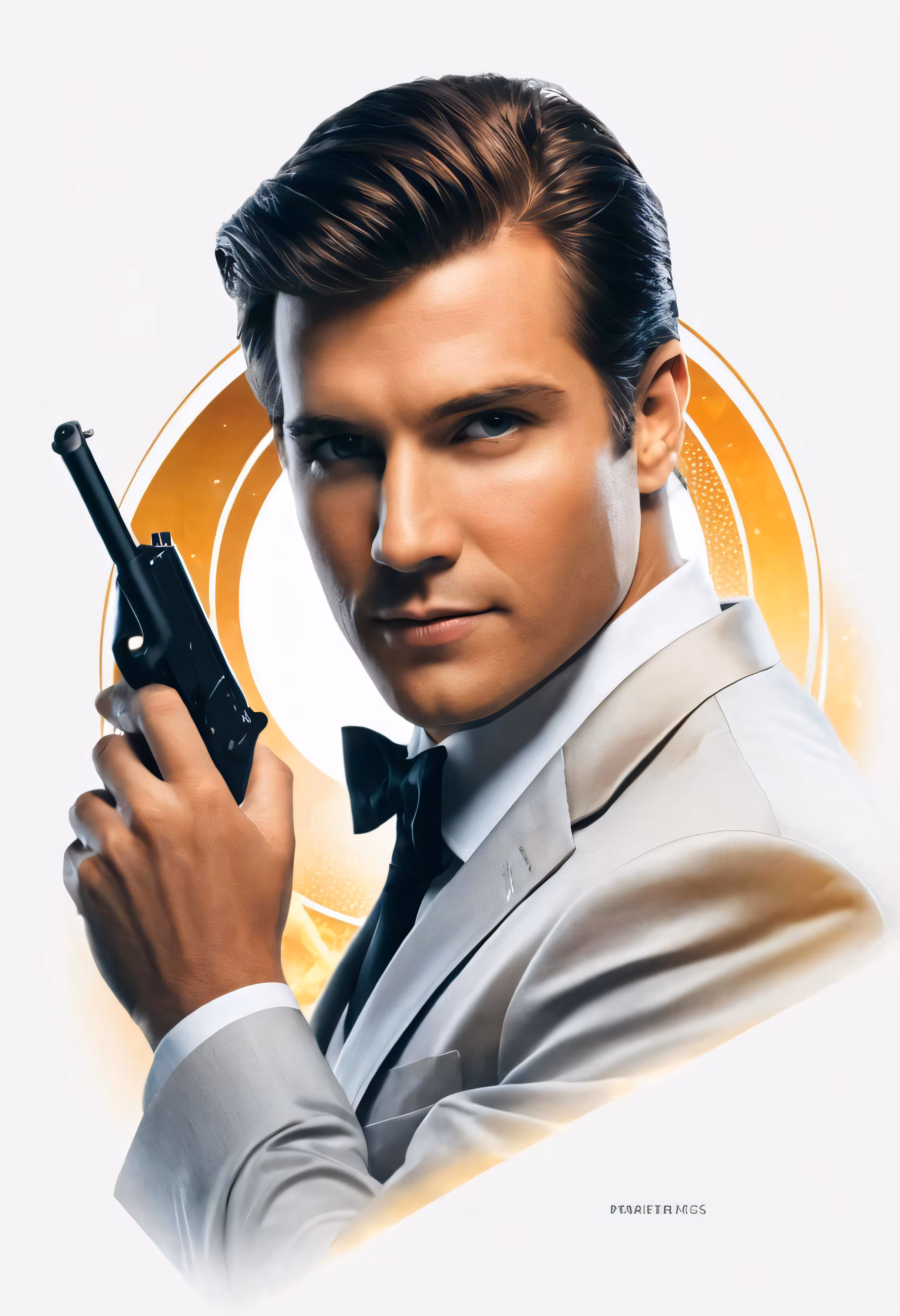 High resolution picture, free to use, a man in suit holding a gun on a poster