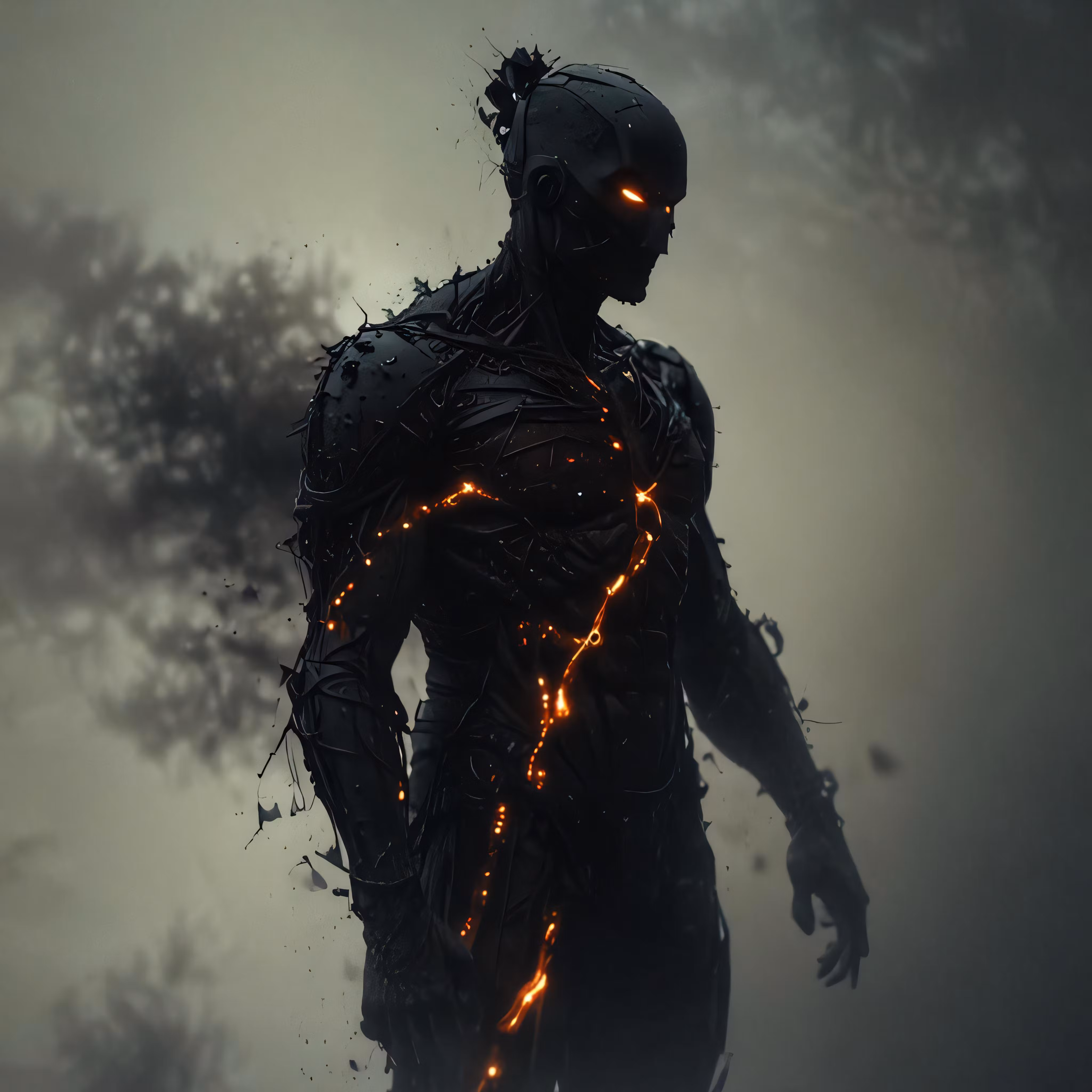 High resolution picture, free to use, a man in the middle of dark night holding his arm out with fire inside
