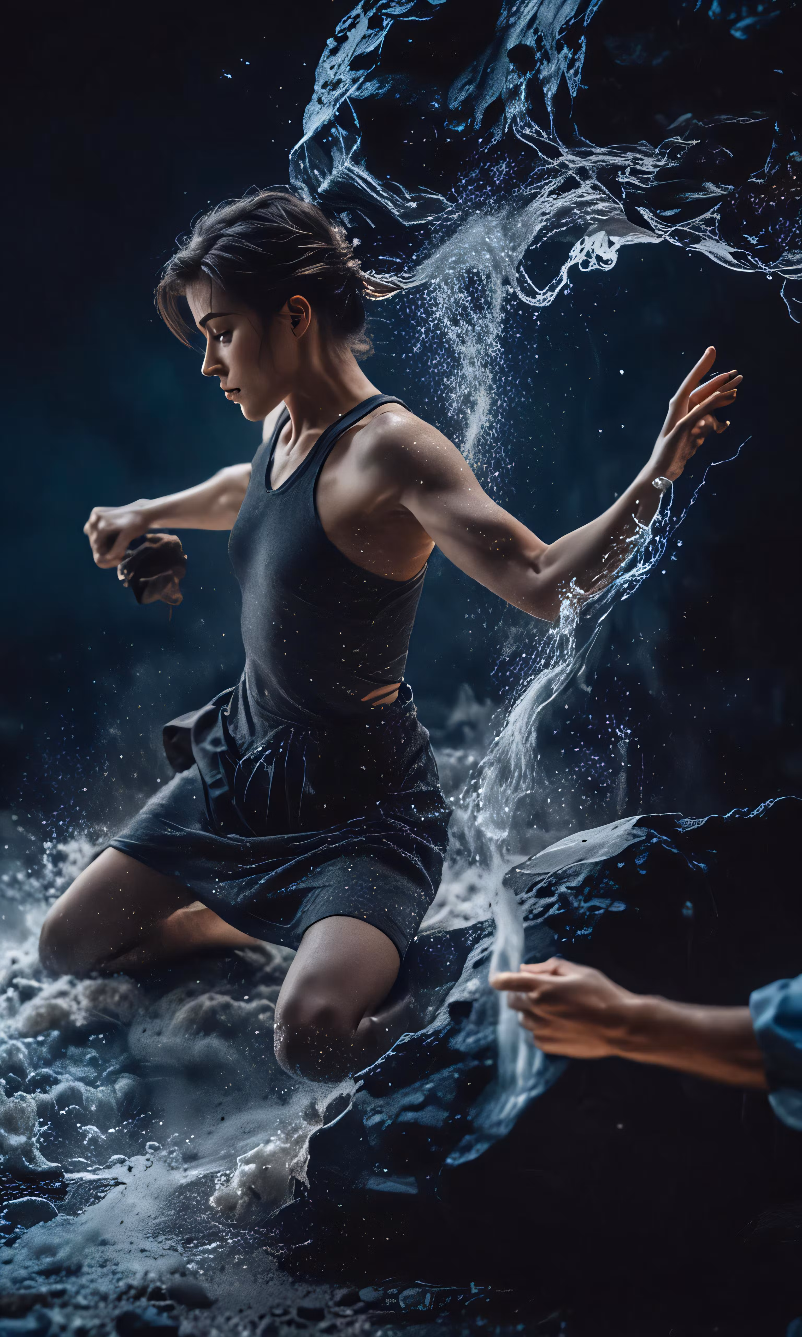 High resolution picture, free to use, a man in water running through a body of water