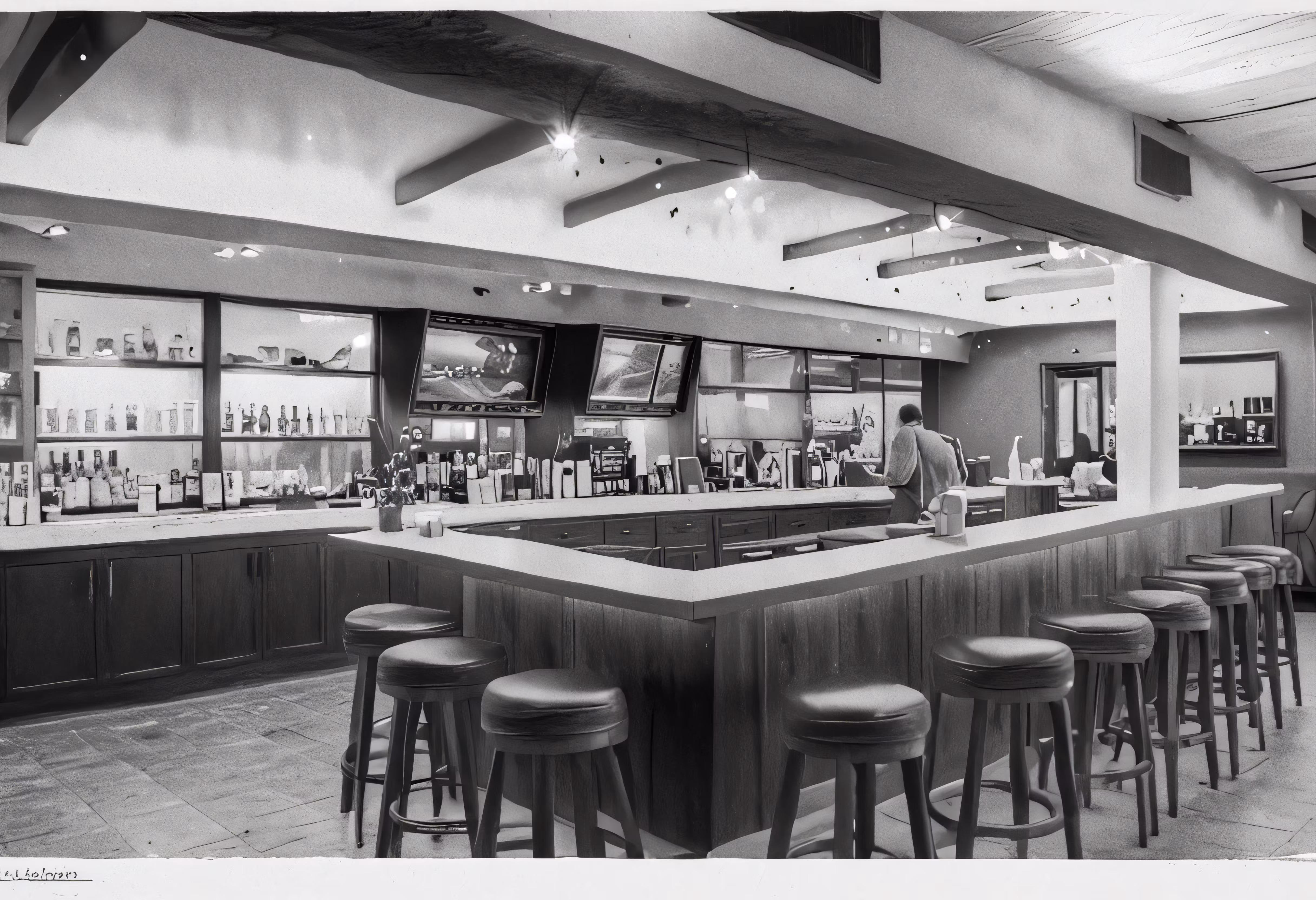 High resolution picture, free to use, a man is behind the bar looking in the store window