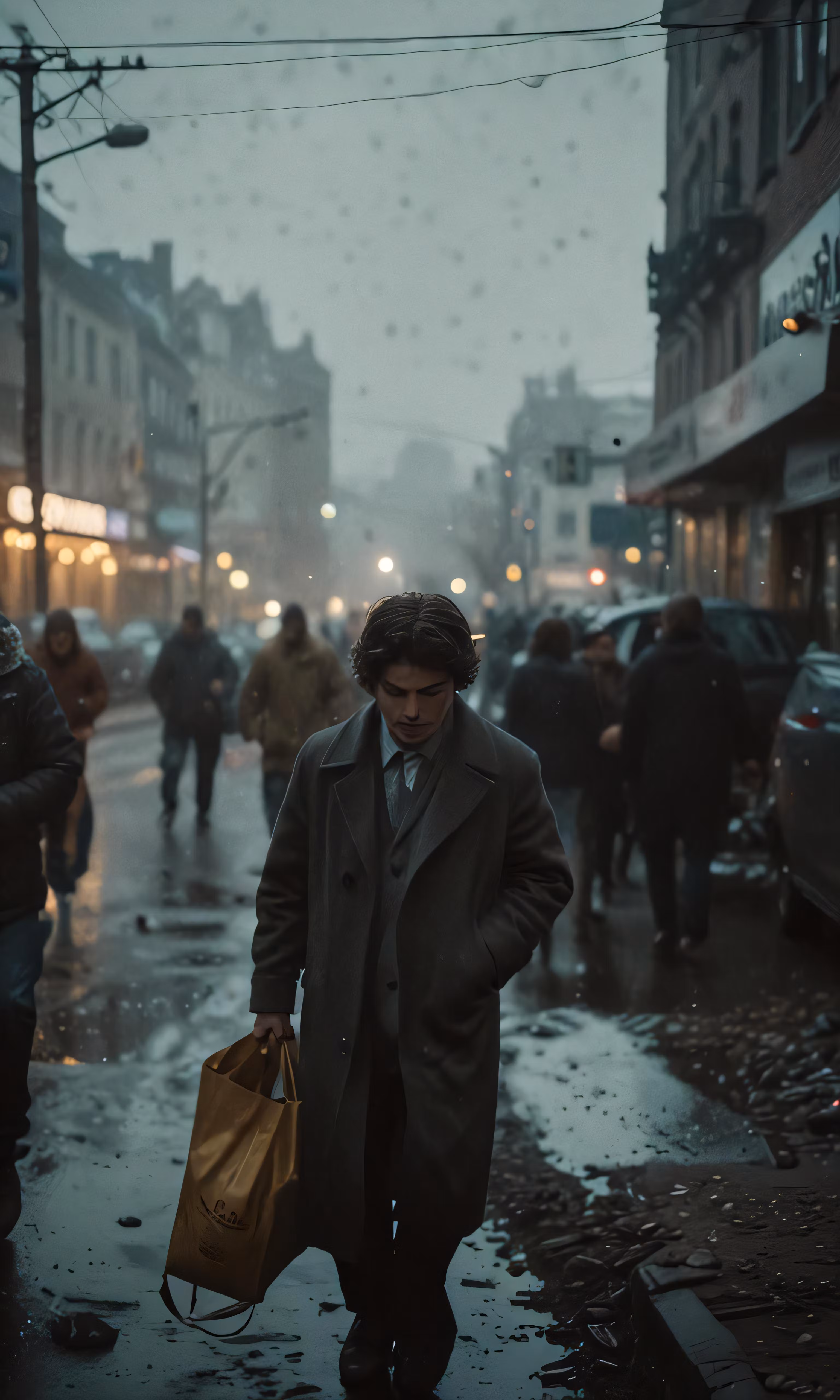High resolution picture, free to use, a man is carrying an umbrella as he walks down the street