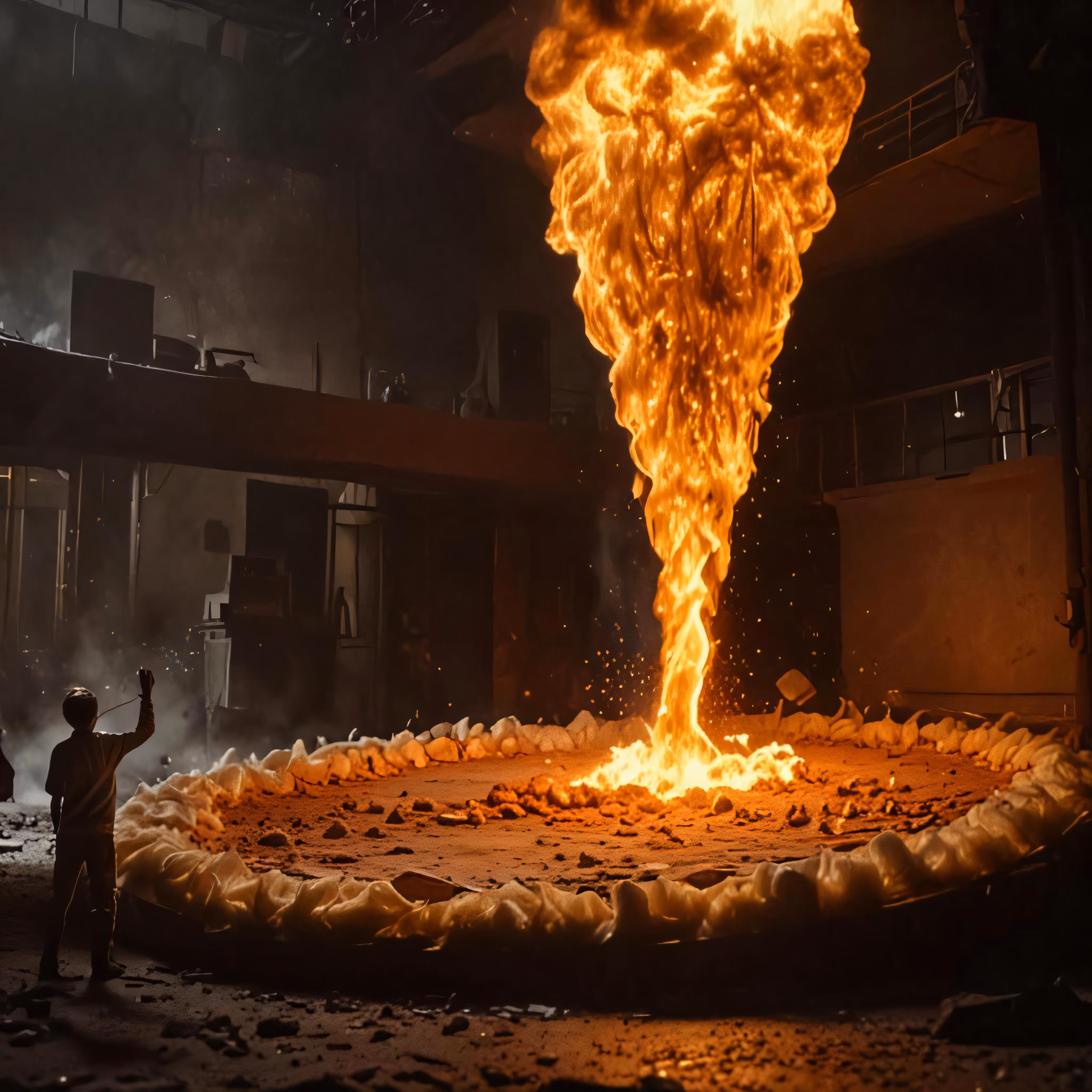 High resolution picture, free to use, a man is standing in front of an enormous pizza