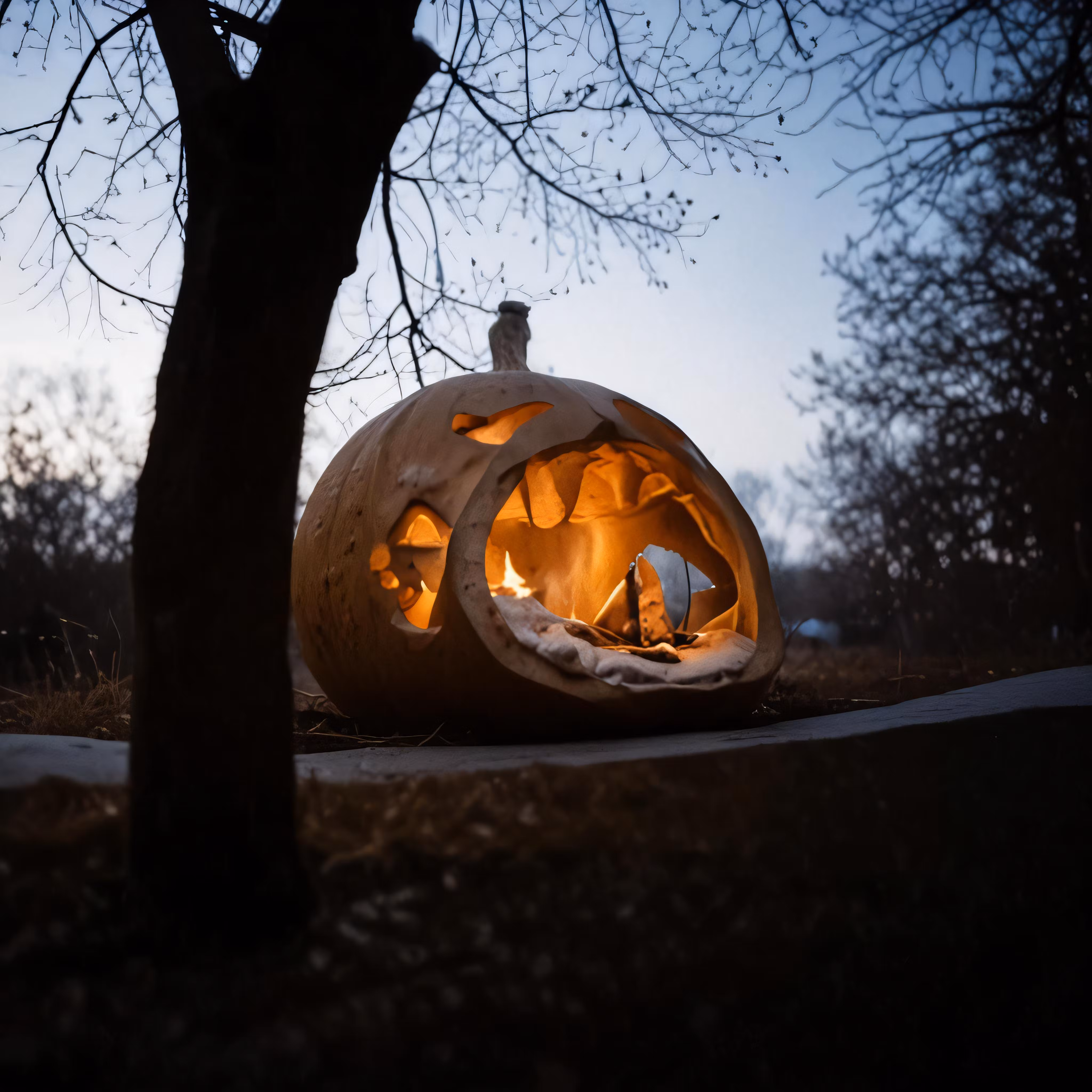 High resolution picture, free to use, a man is standing on the top of a carved pumpkin