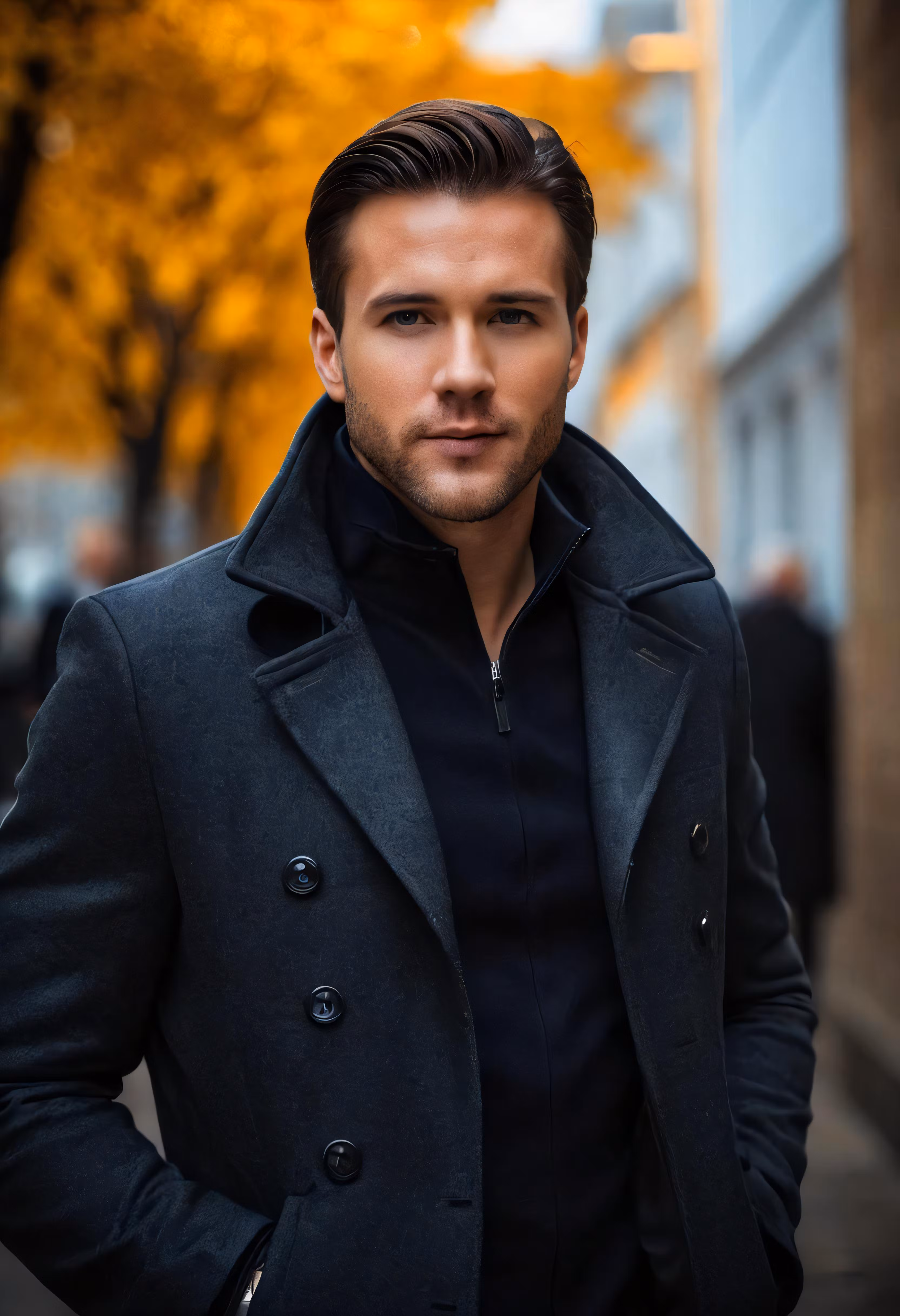 High resolution picture, free to use, a man is standing outside in a coat