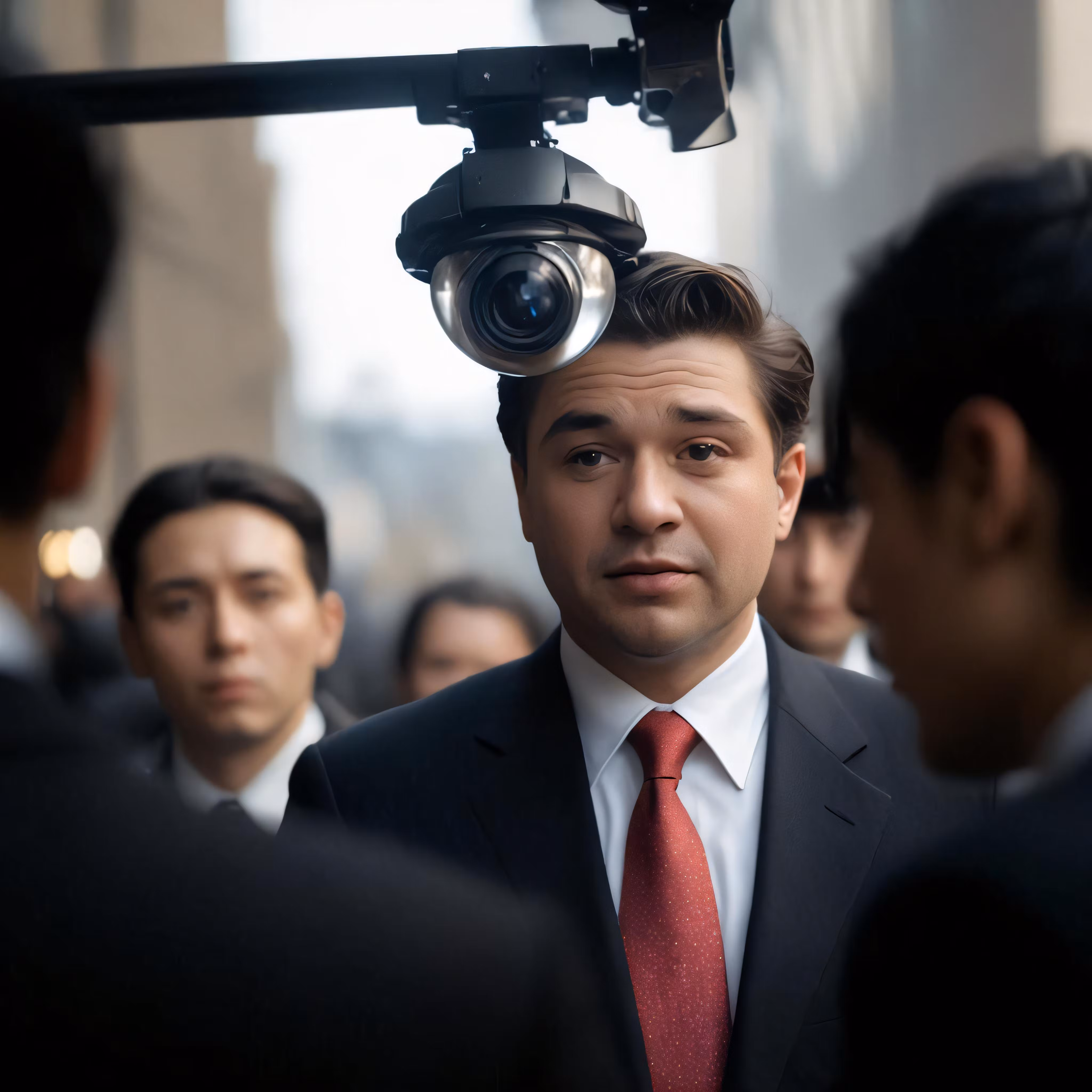 High resolution picture, free to use, a man is staring at the camera while a video is recording him