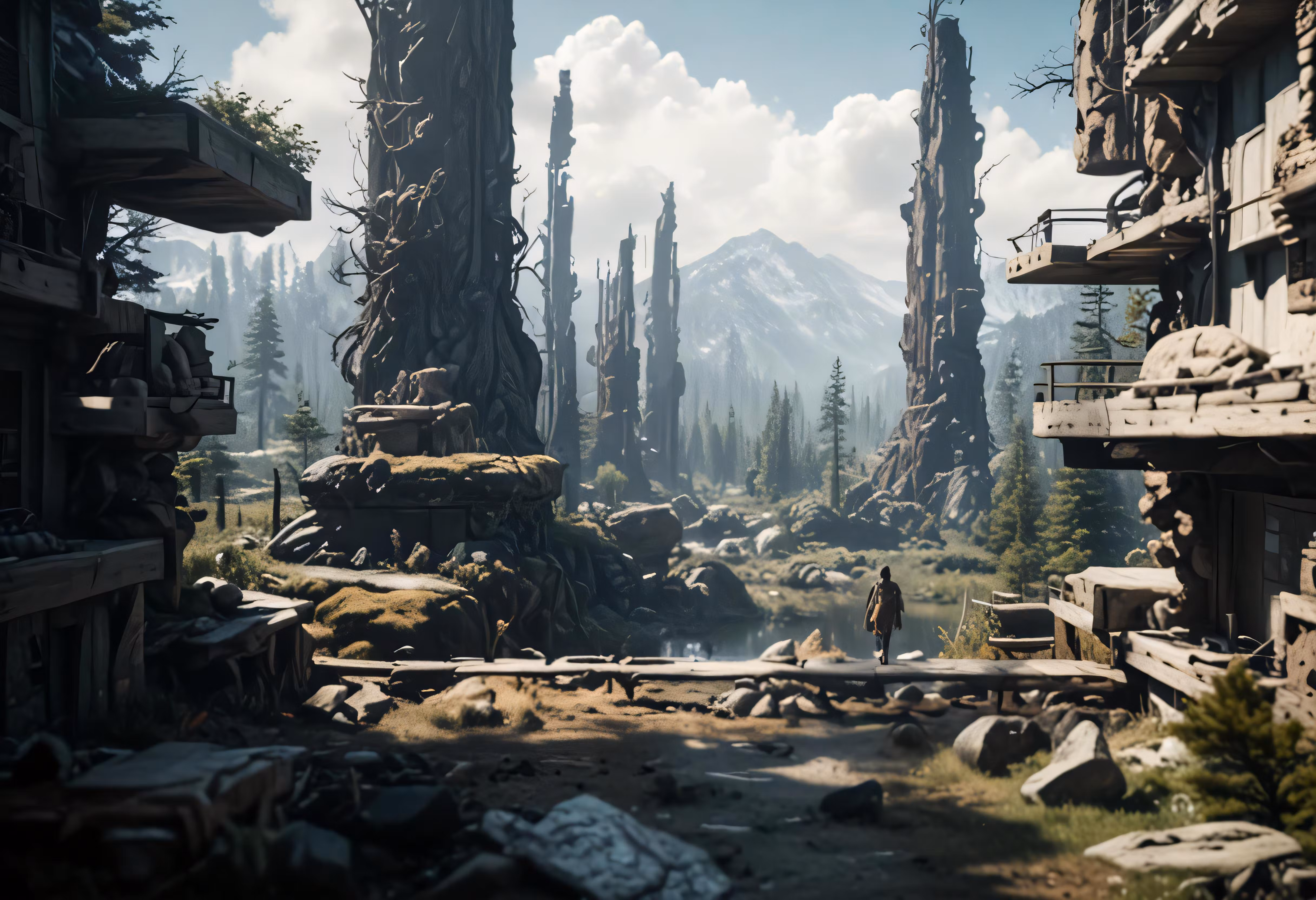 High resolution picture, free to use, a man is walking through a dirty industrial area