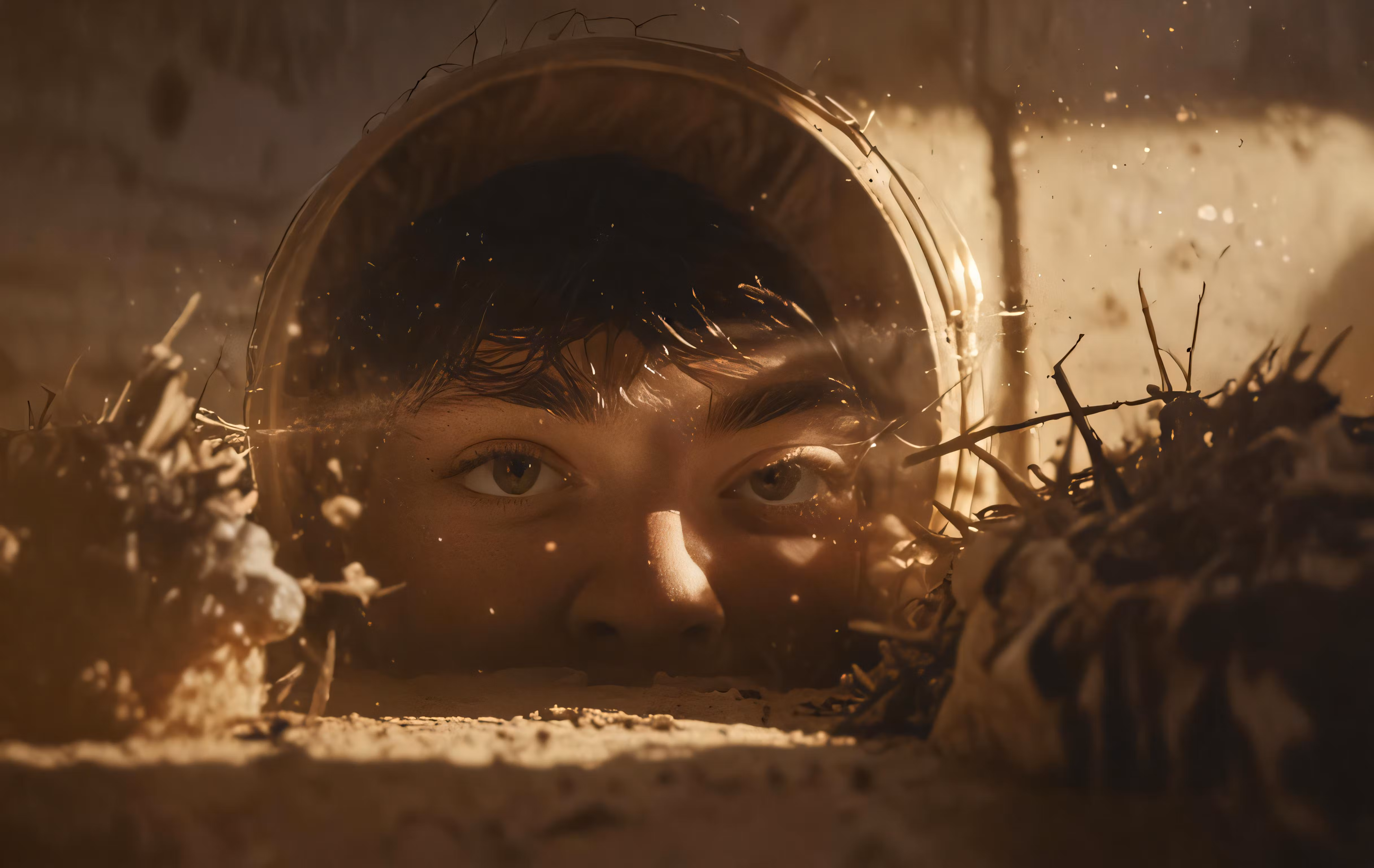 High resolution picture, free to use, a man looking at a basket with prickes on it
