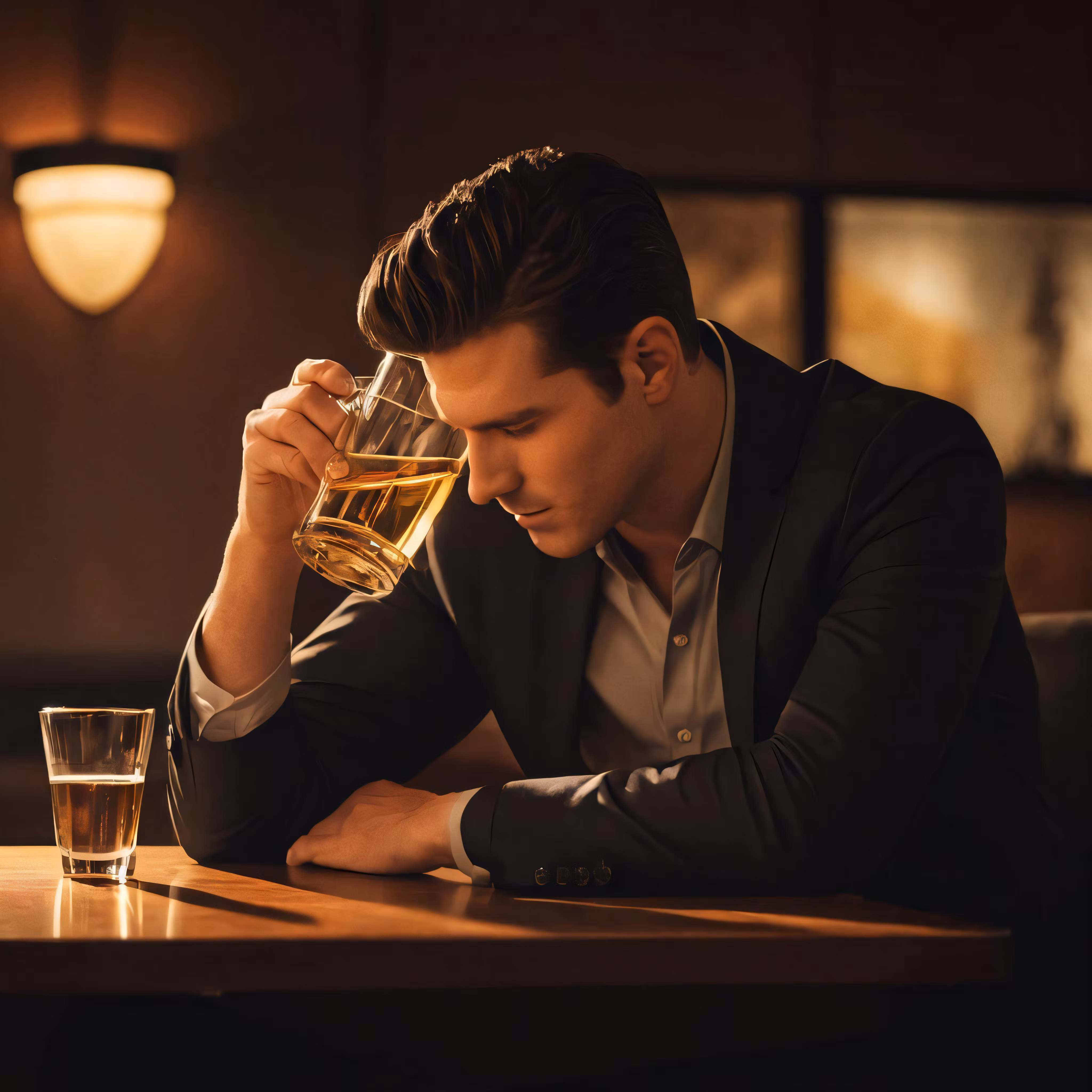 High resolution picture, free to use, a man looking down at a glass in his hand
