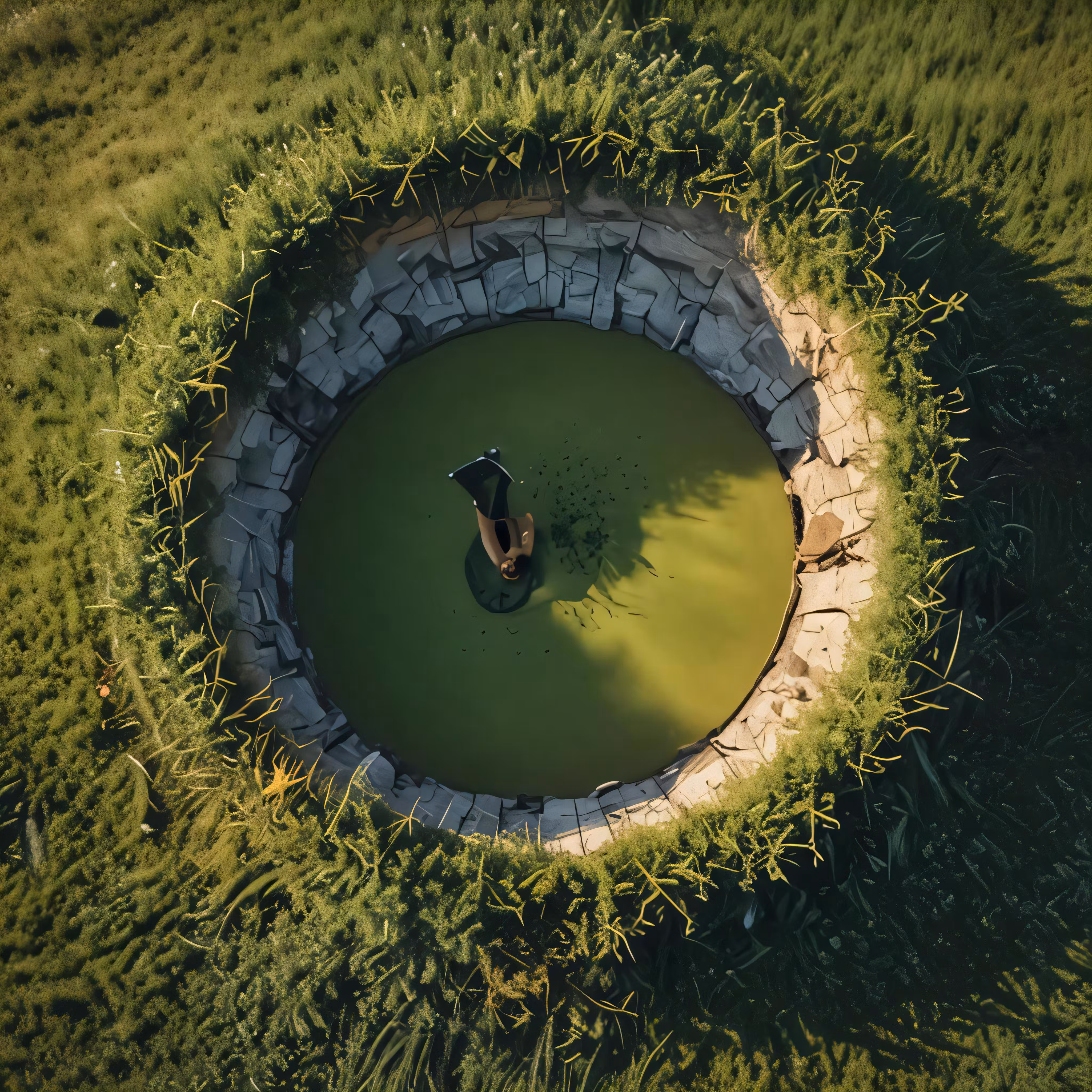 High resolution picture, free to use, a man made pond is surrounded by a grassy area