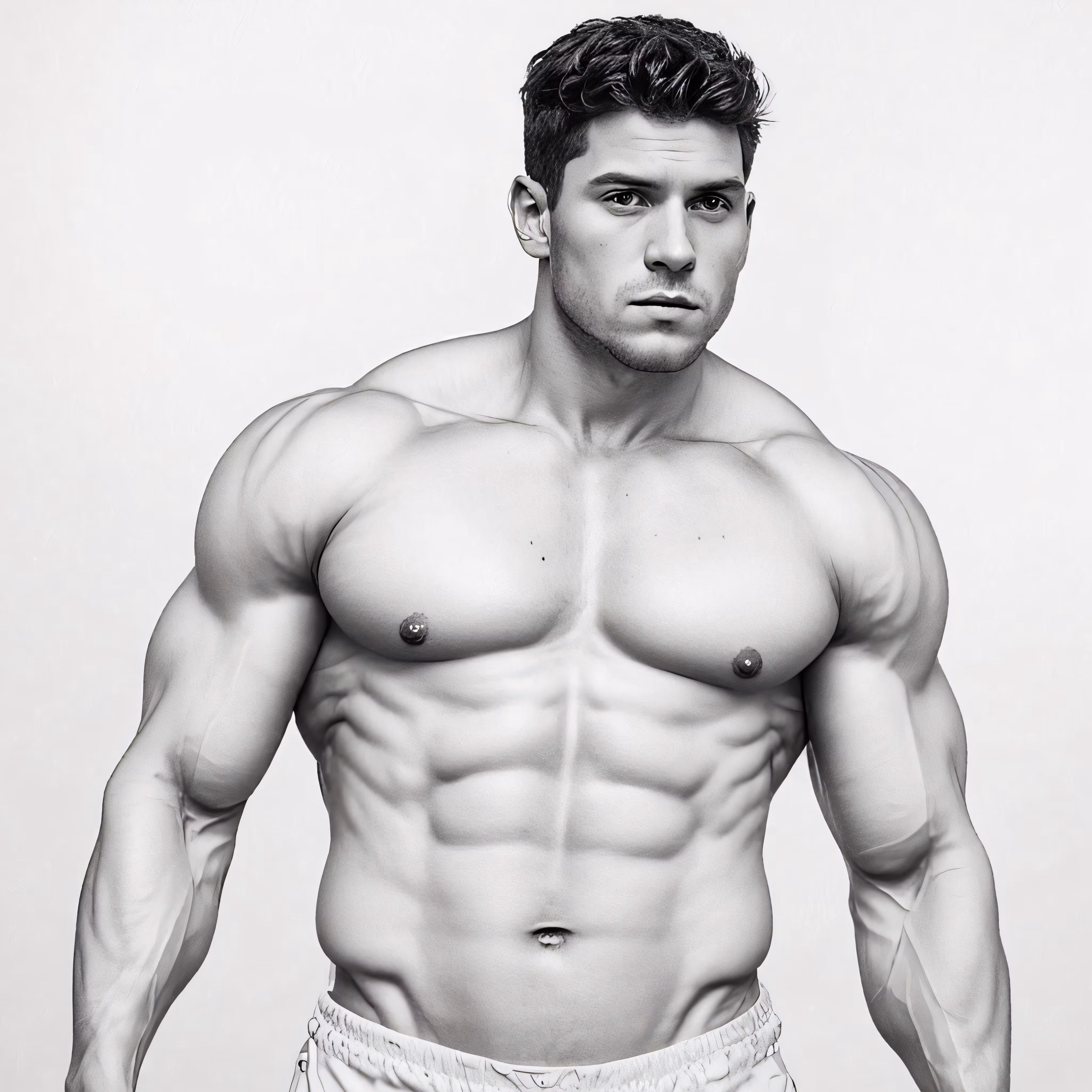 High resolution picture, free to use, a man posing with his big breast and his no shirt on