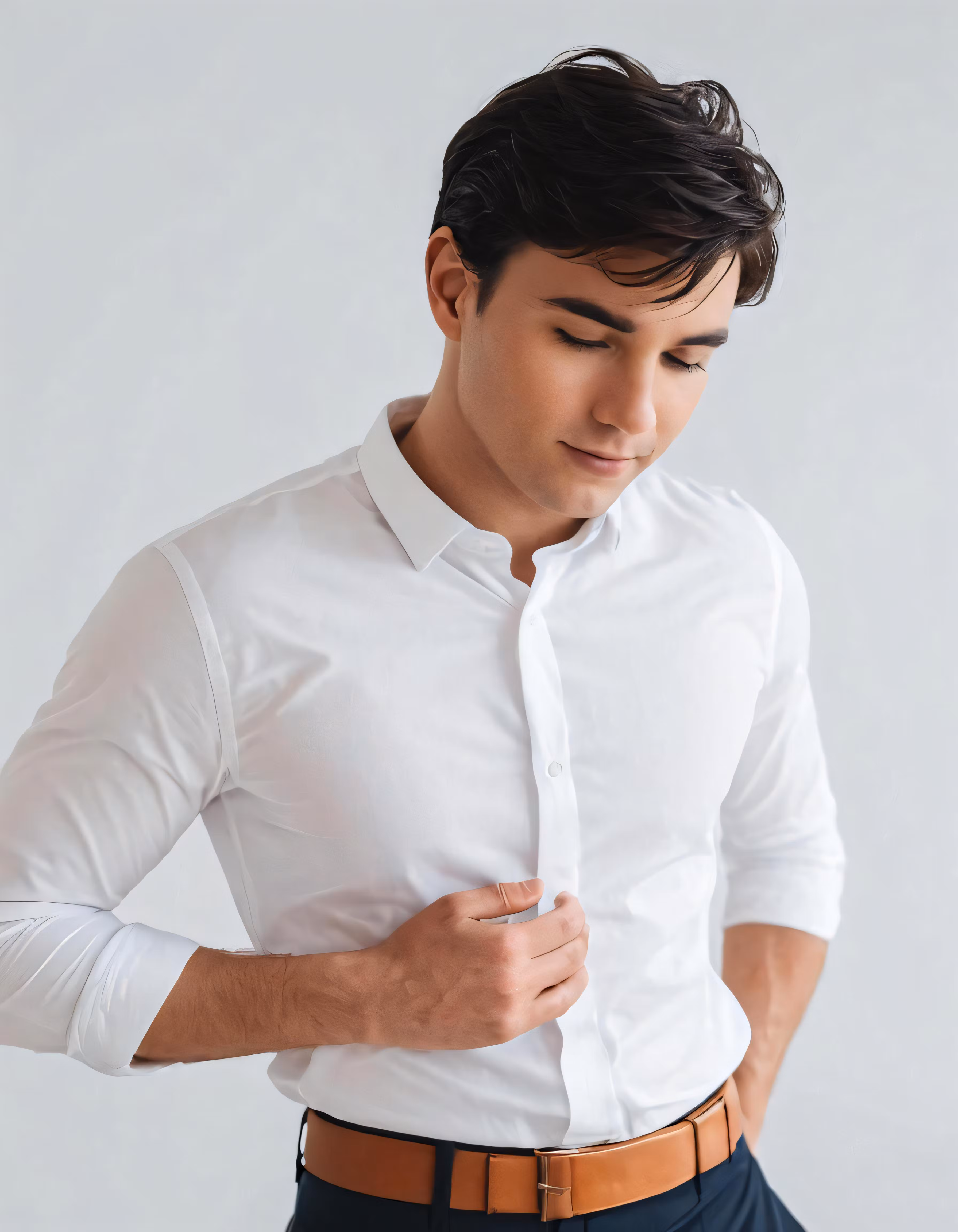 High resolution picture, free to use, a man putting on a tie on his white shirt