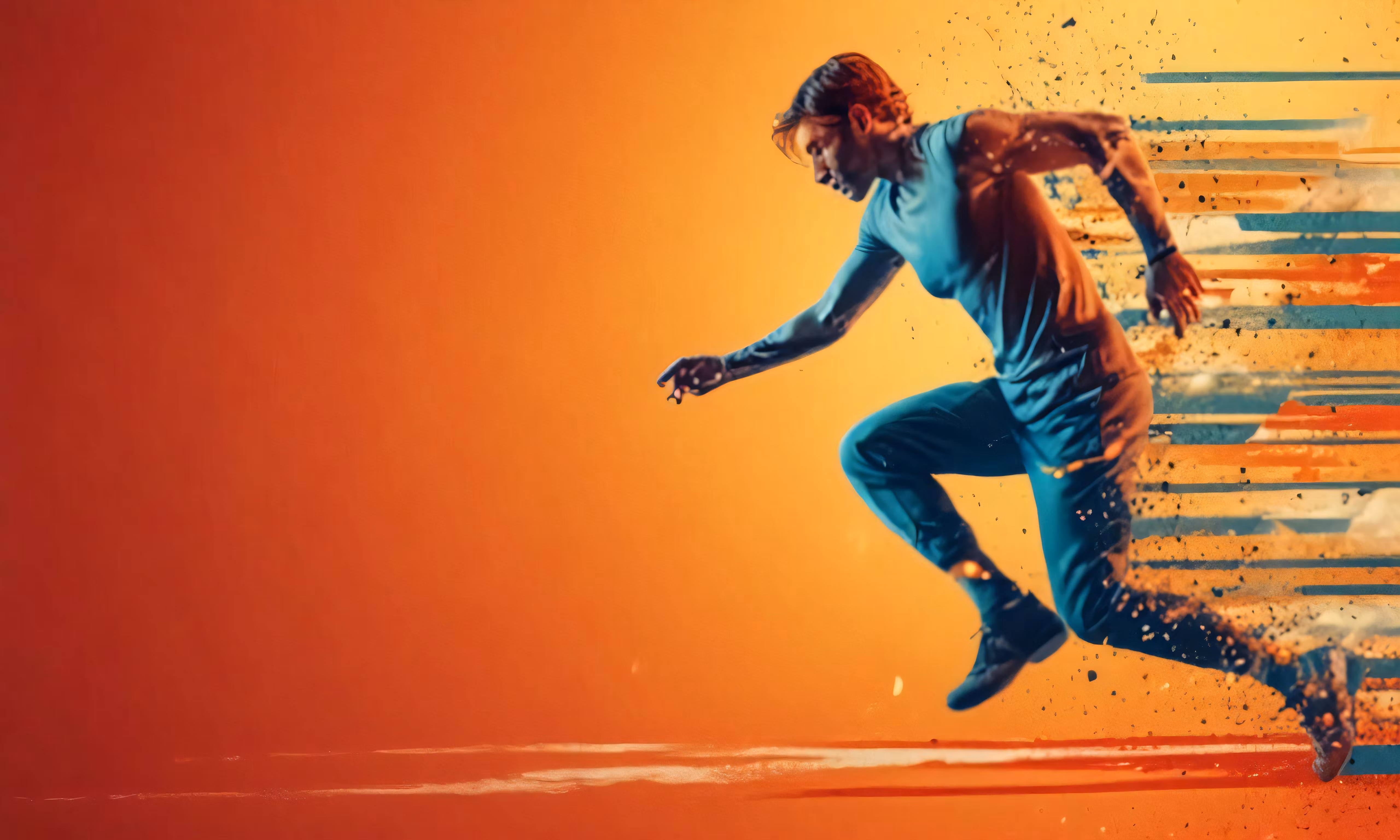 High resolution picture, free to use, a man running across the air in a blue outfit