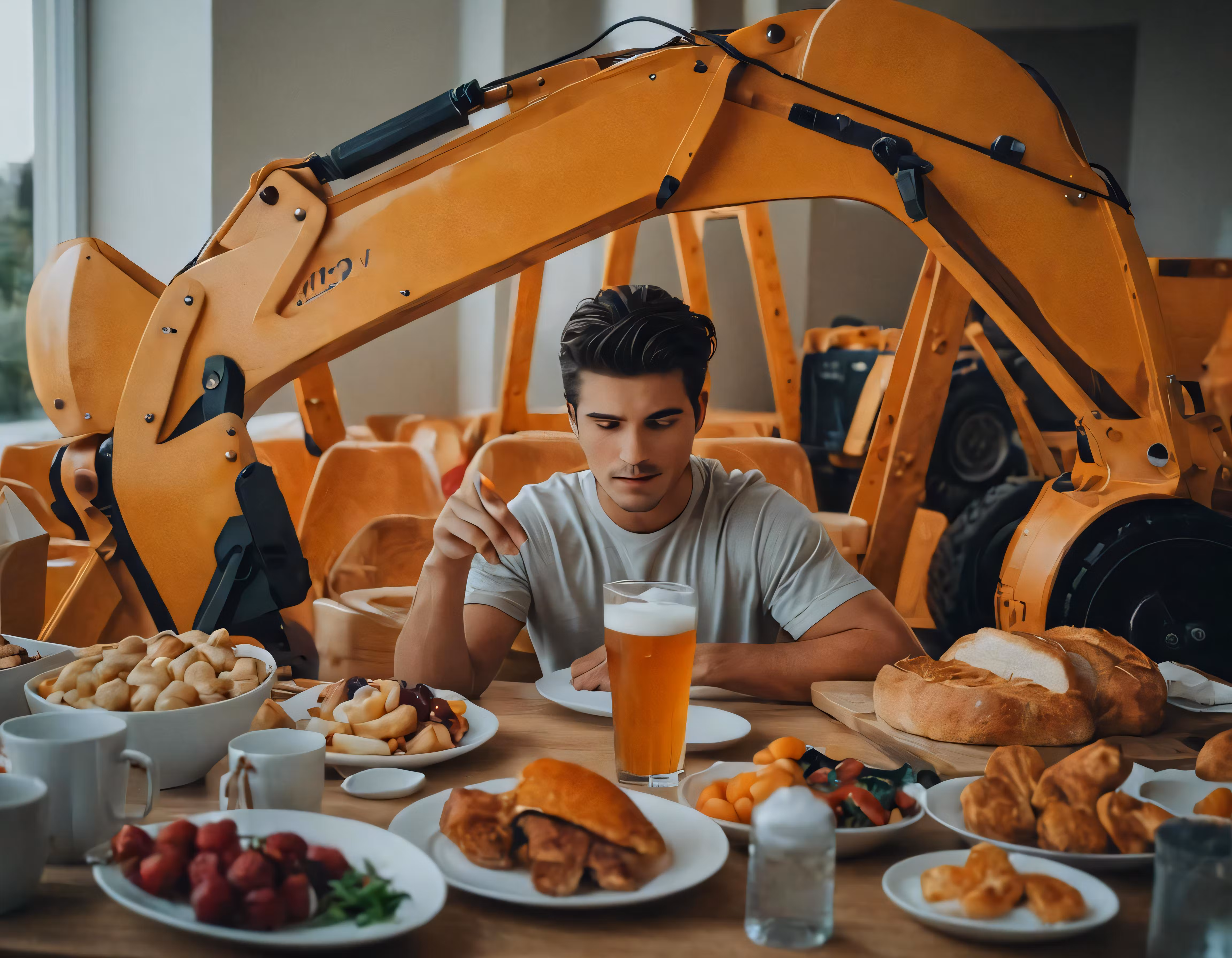 High resolution picture, free to use, a man sitting at a table covered in plates of food