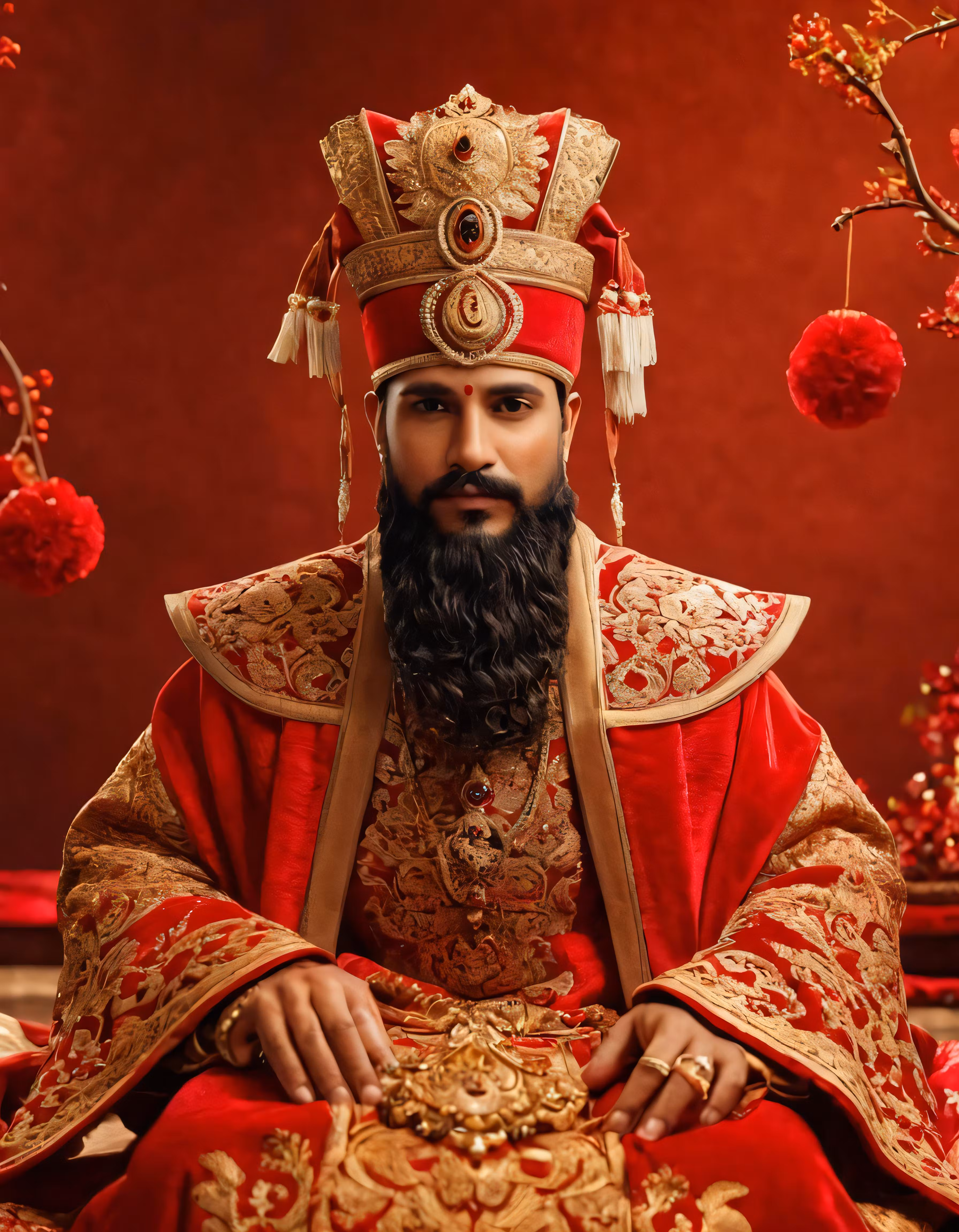 High resolution picture, free to use, a man sitting in front of a red backdrop