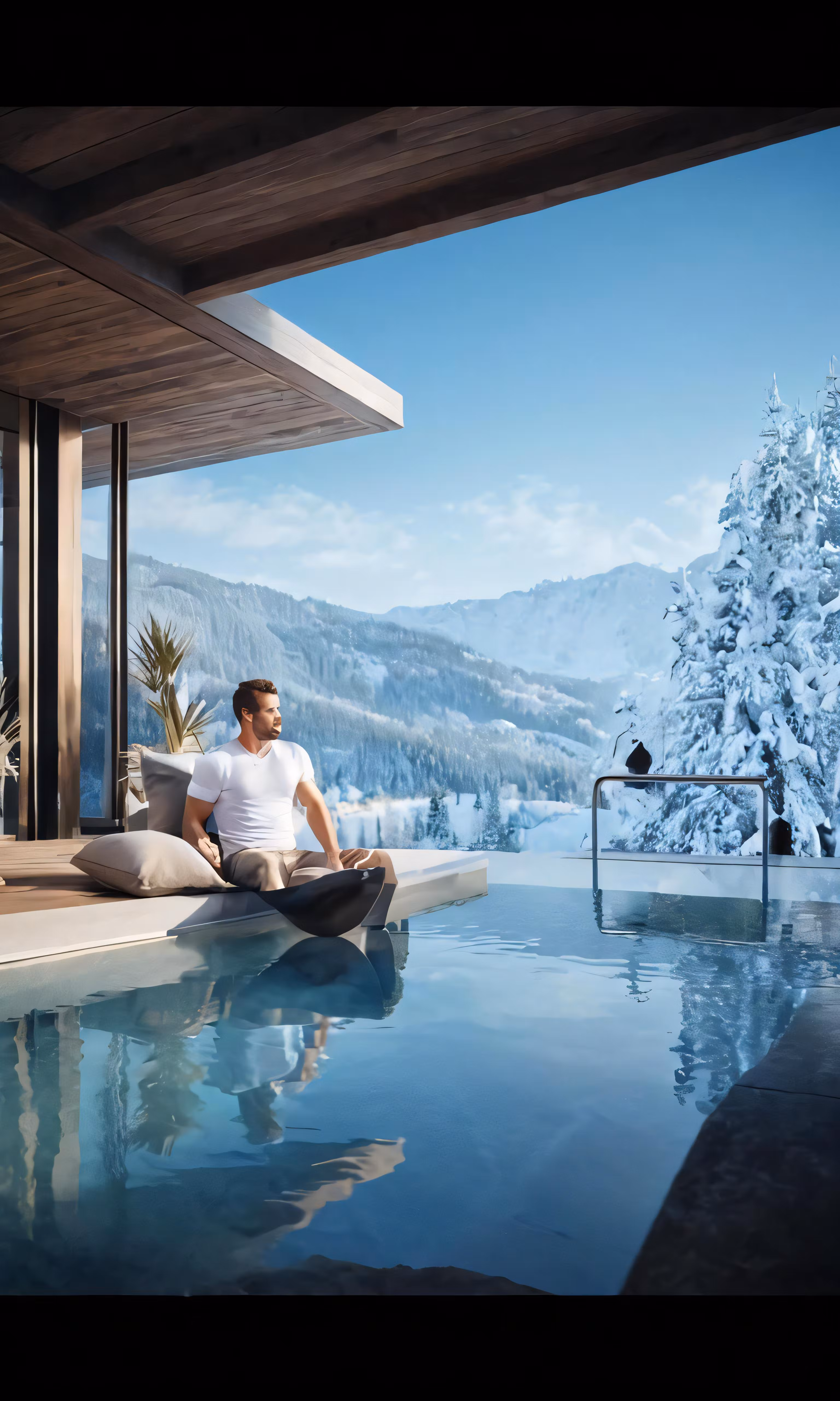 High resolution picture, free to use, a man sitting on an outdoor pool side