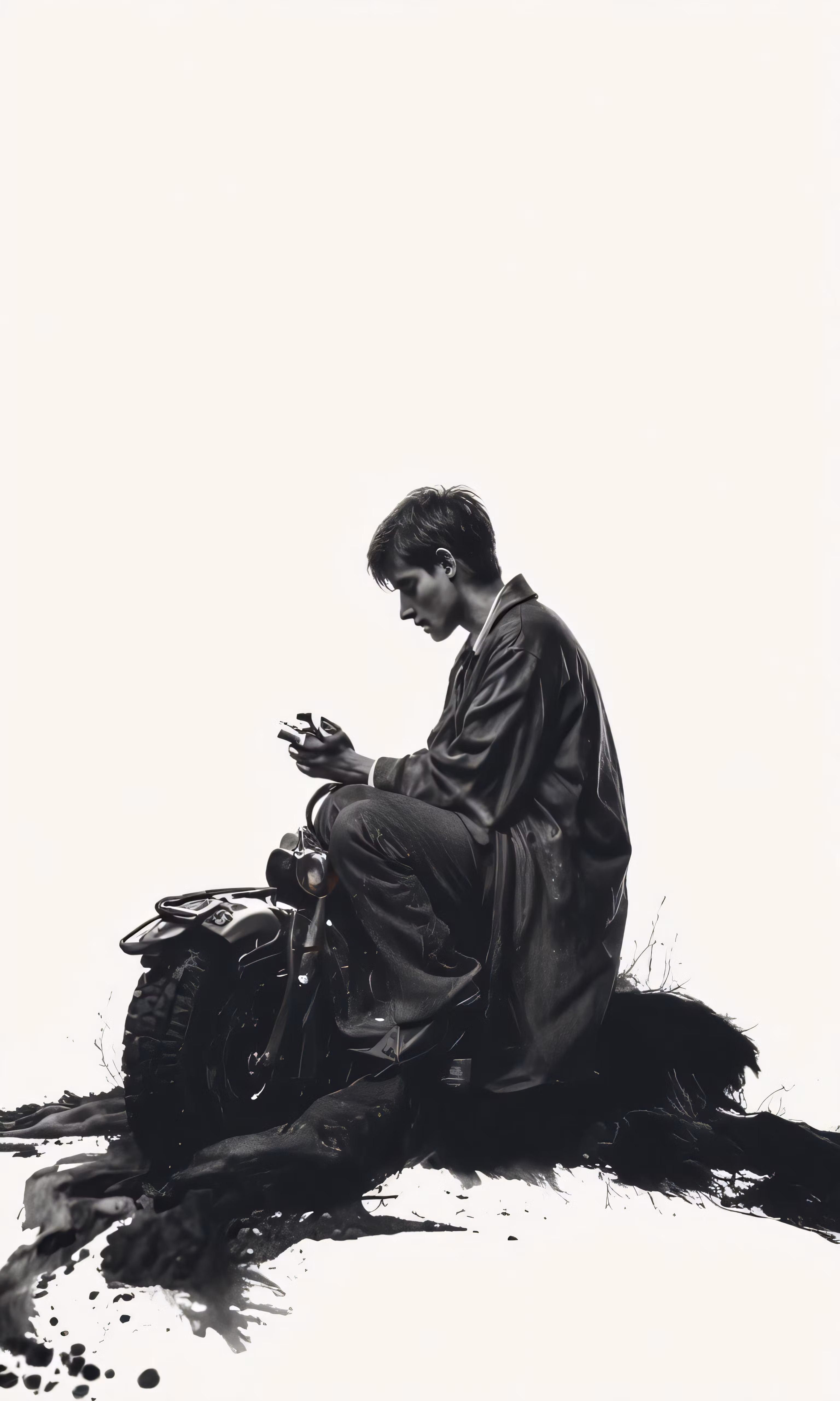 High resolution picture, free to use, a man sitting on the ground looking at a cell phone