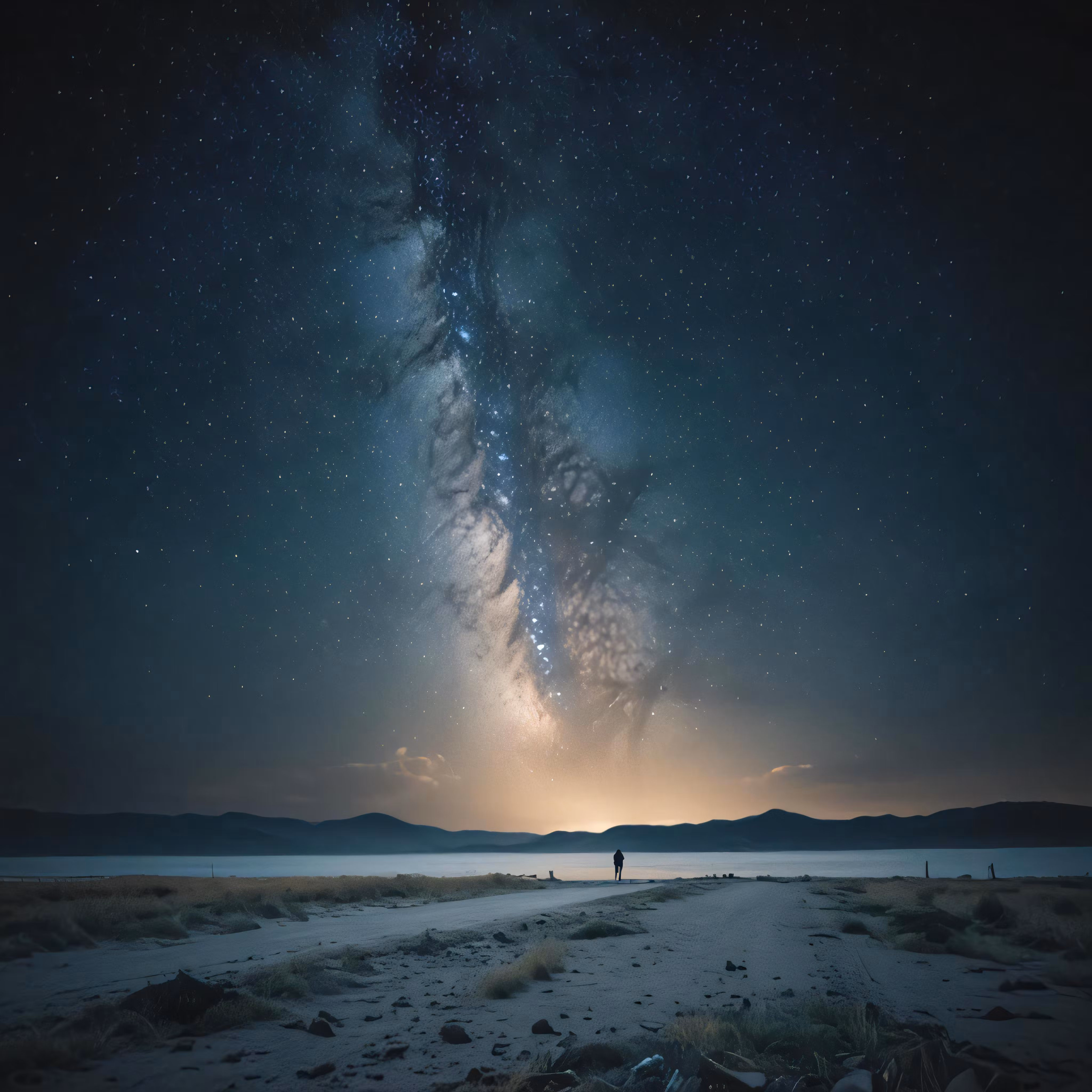 High resolution picture, free to use, a man standing alone looking at the stars in the sky