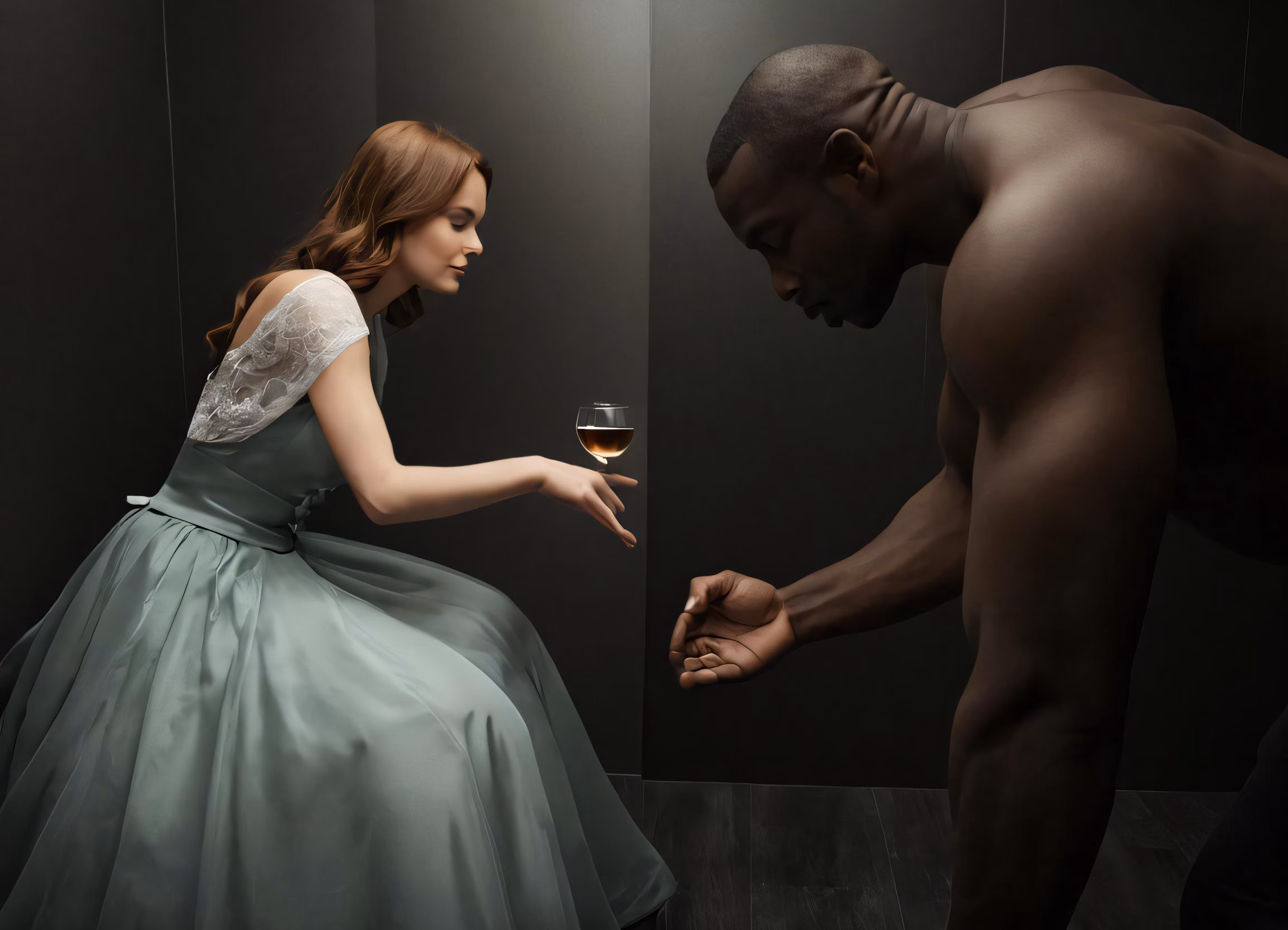 High resolution picture, free to use, a man standing behind a woman in a blue dress