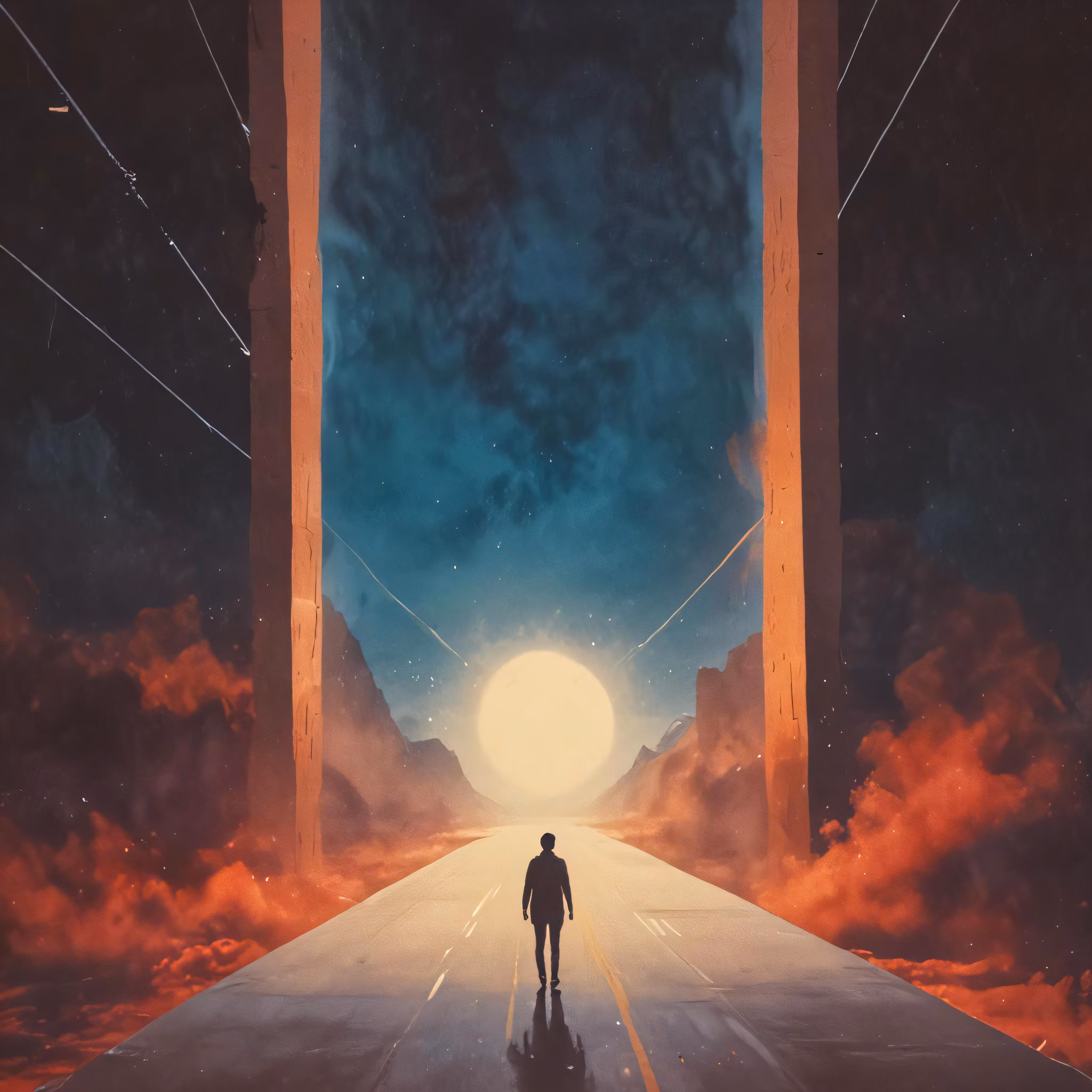 High resolution picture, free to use, a man standing in an abstract space under clouds