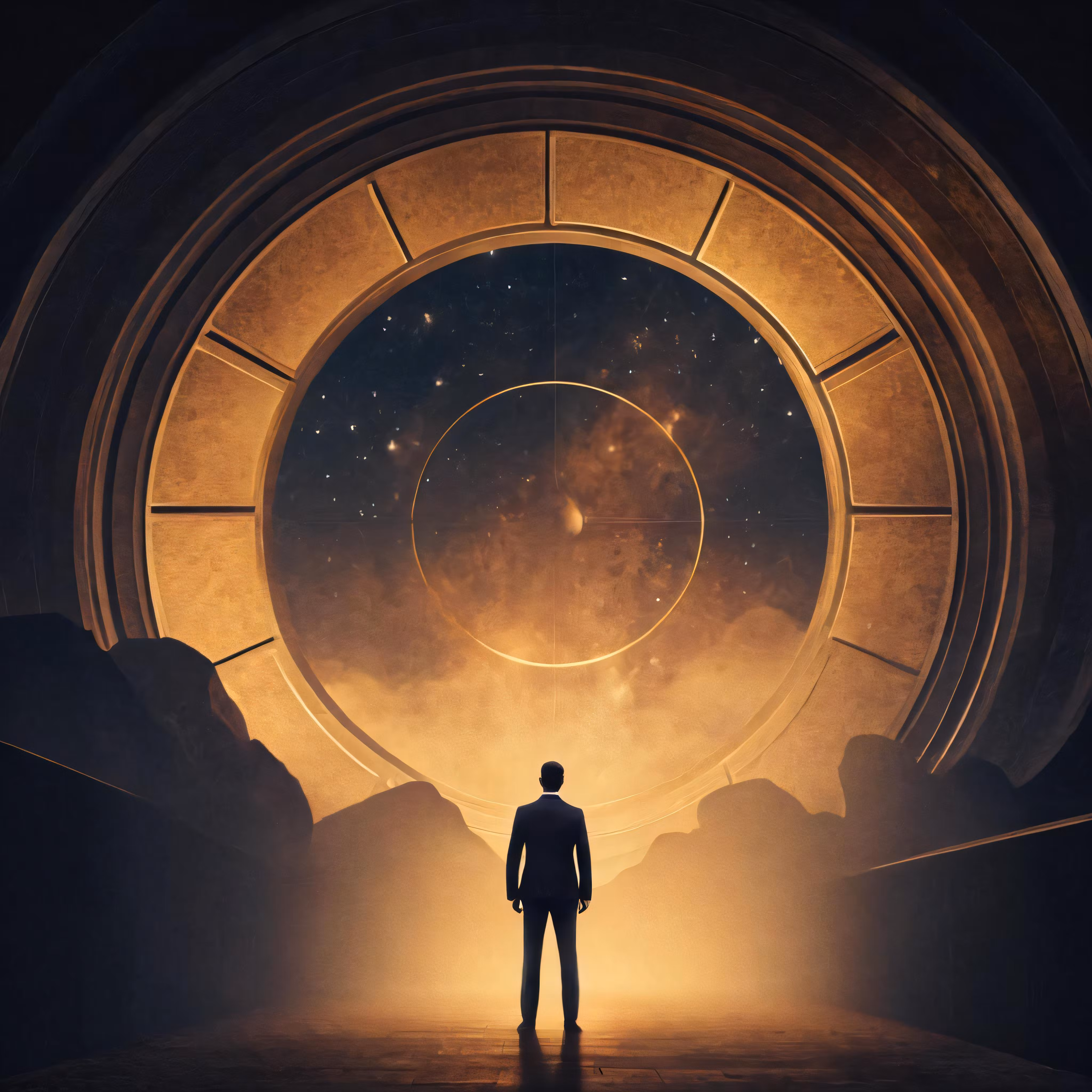 High resolution picture, free to use, a man standing in front of a sci   fi tunnel