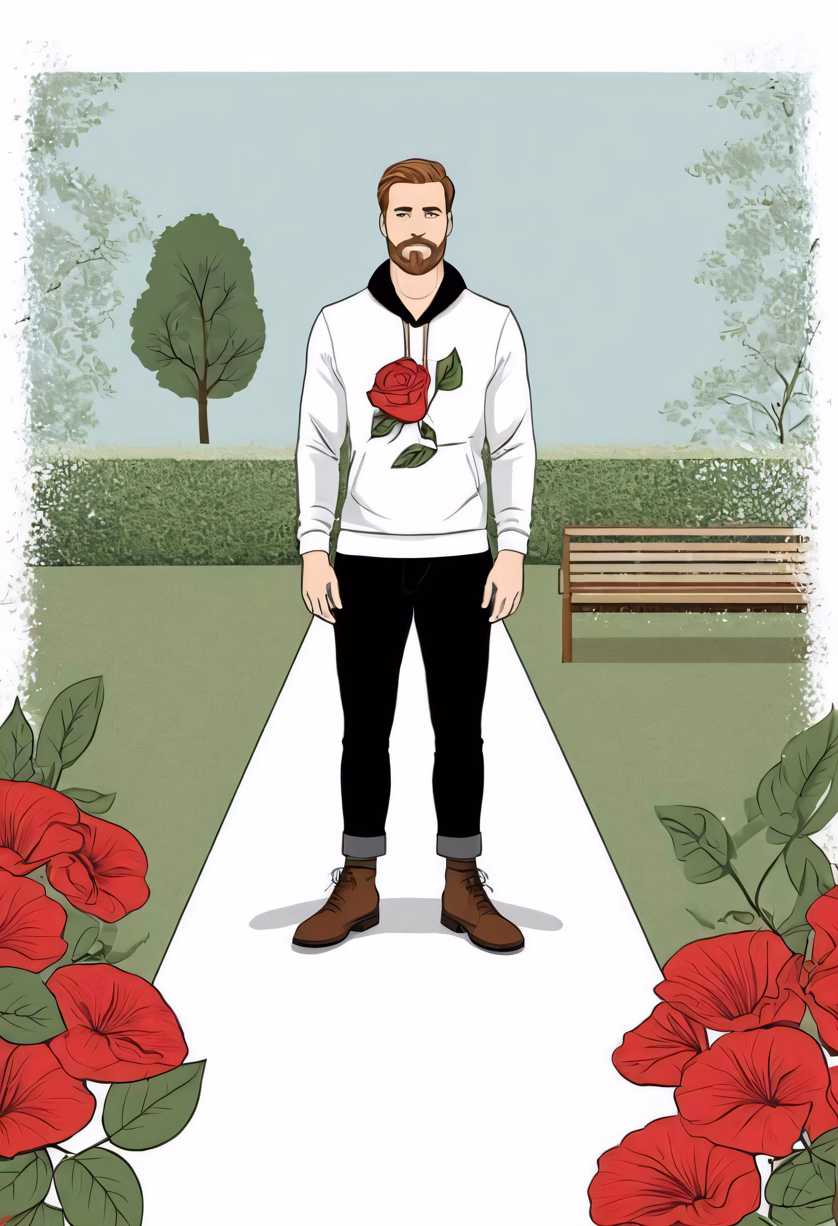 High resolution picture, free to use, a man standing on a flower decorated walkway