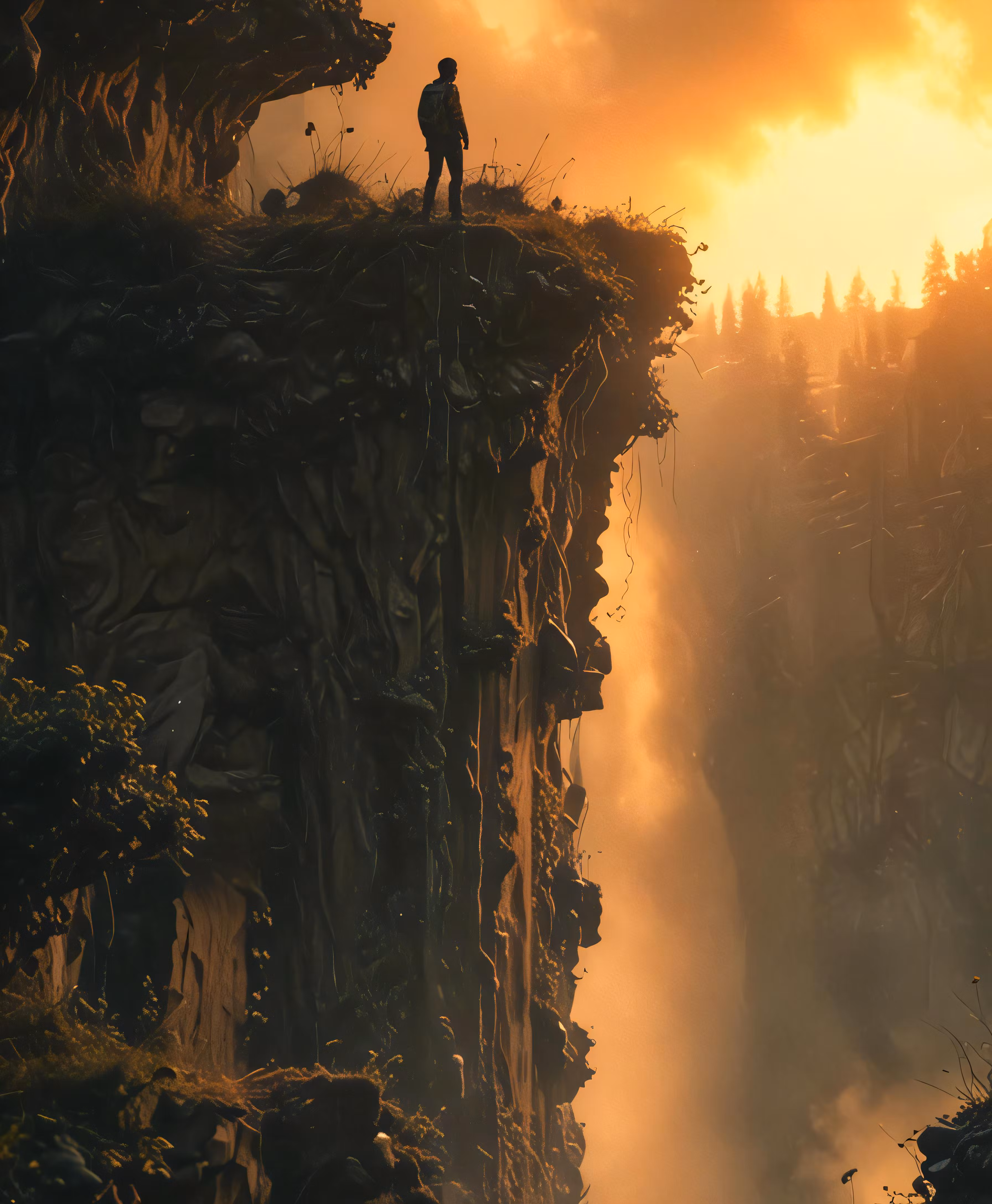 High resolution picture, free to use, a man standing on the edge of a cliff