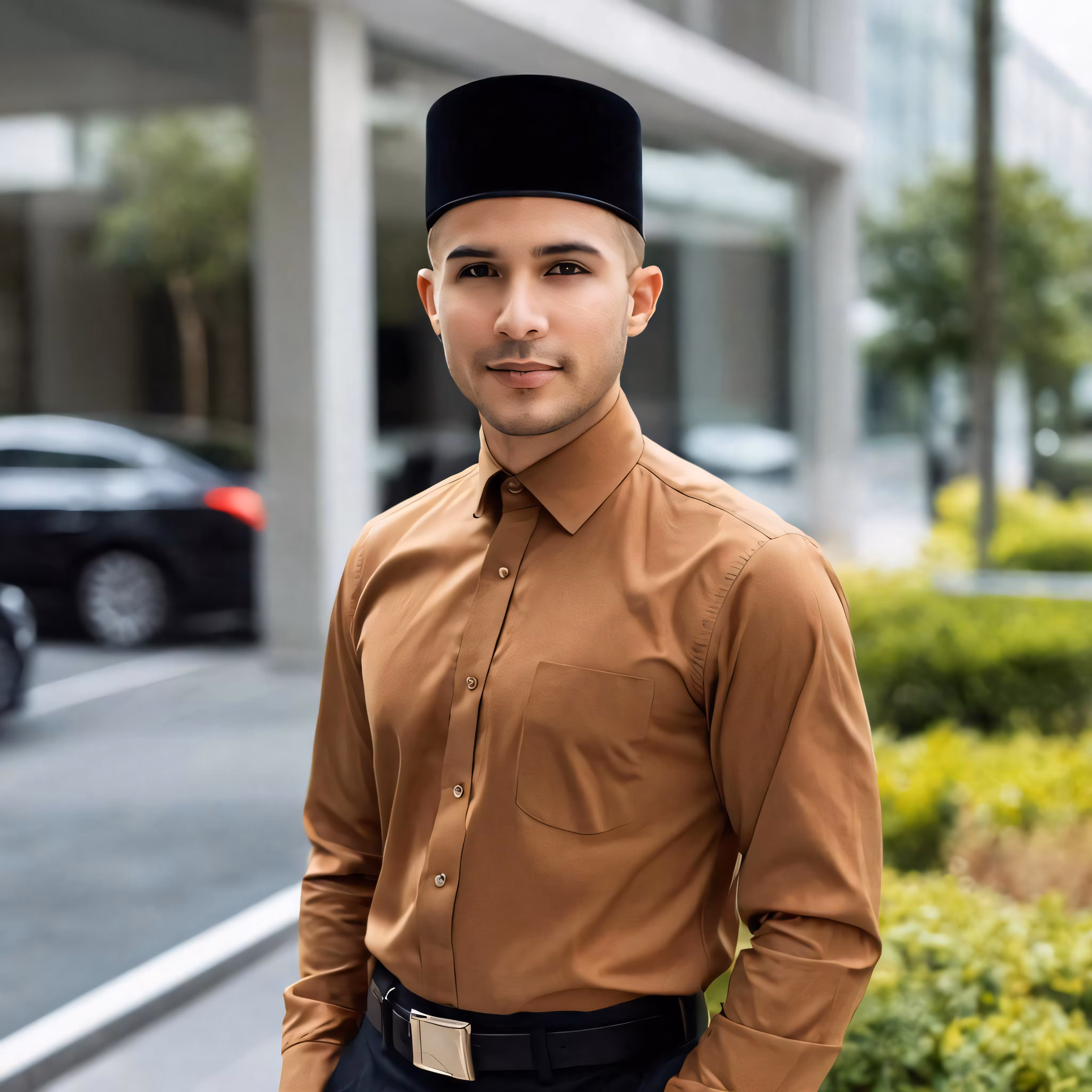 High resolution picture, free to use, a man standing outside in an oriental clothing