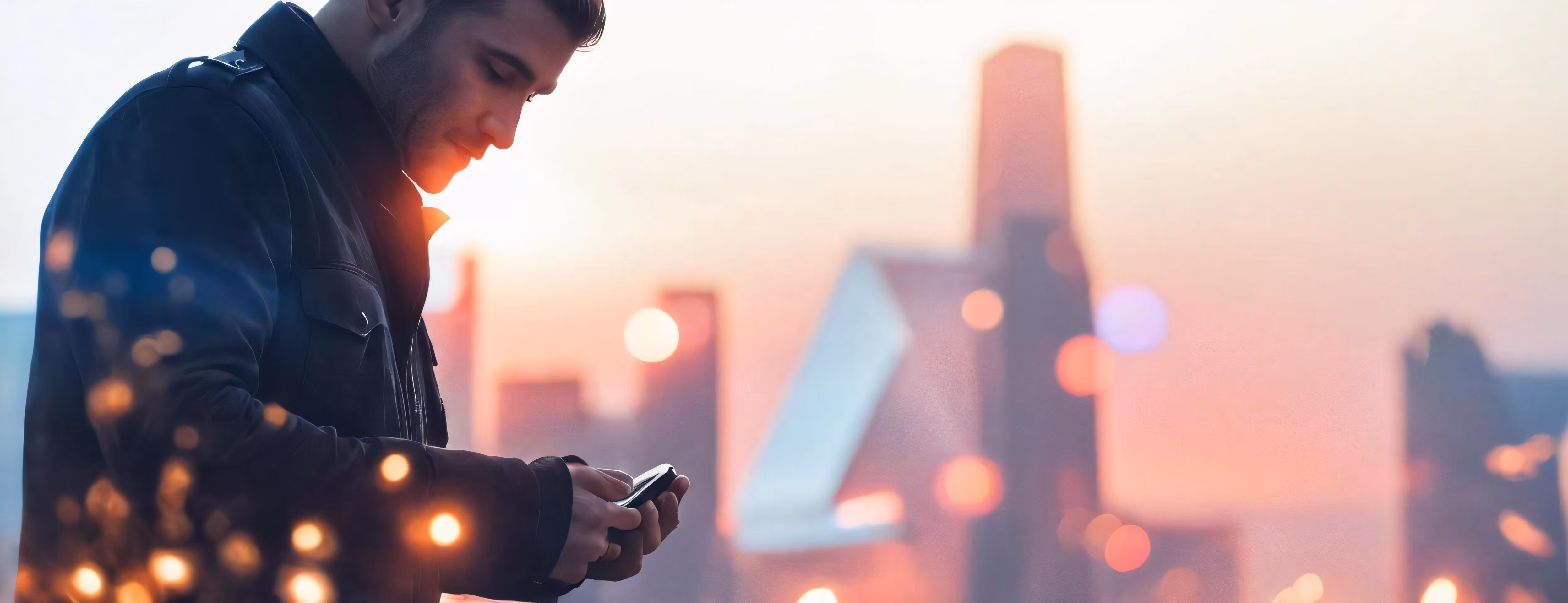 High resolution picture, free to use, a man standing outside with a smart phone in his hand