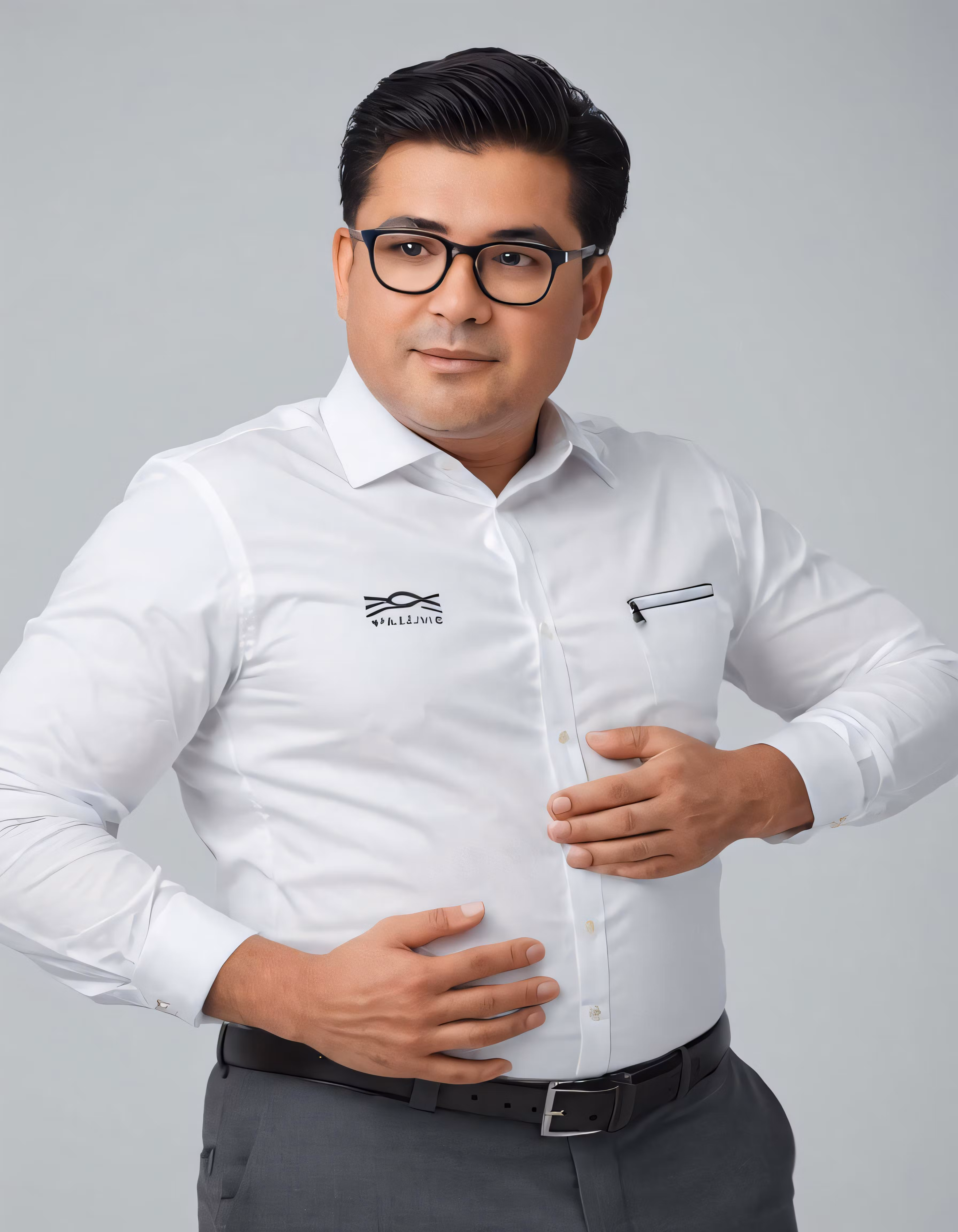 High resolution picture, free to use, a man standing with his hand on his waist, wearing glasses and white shirt