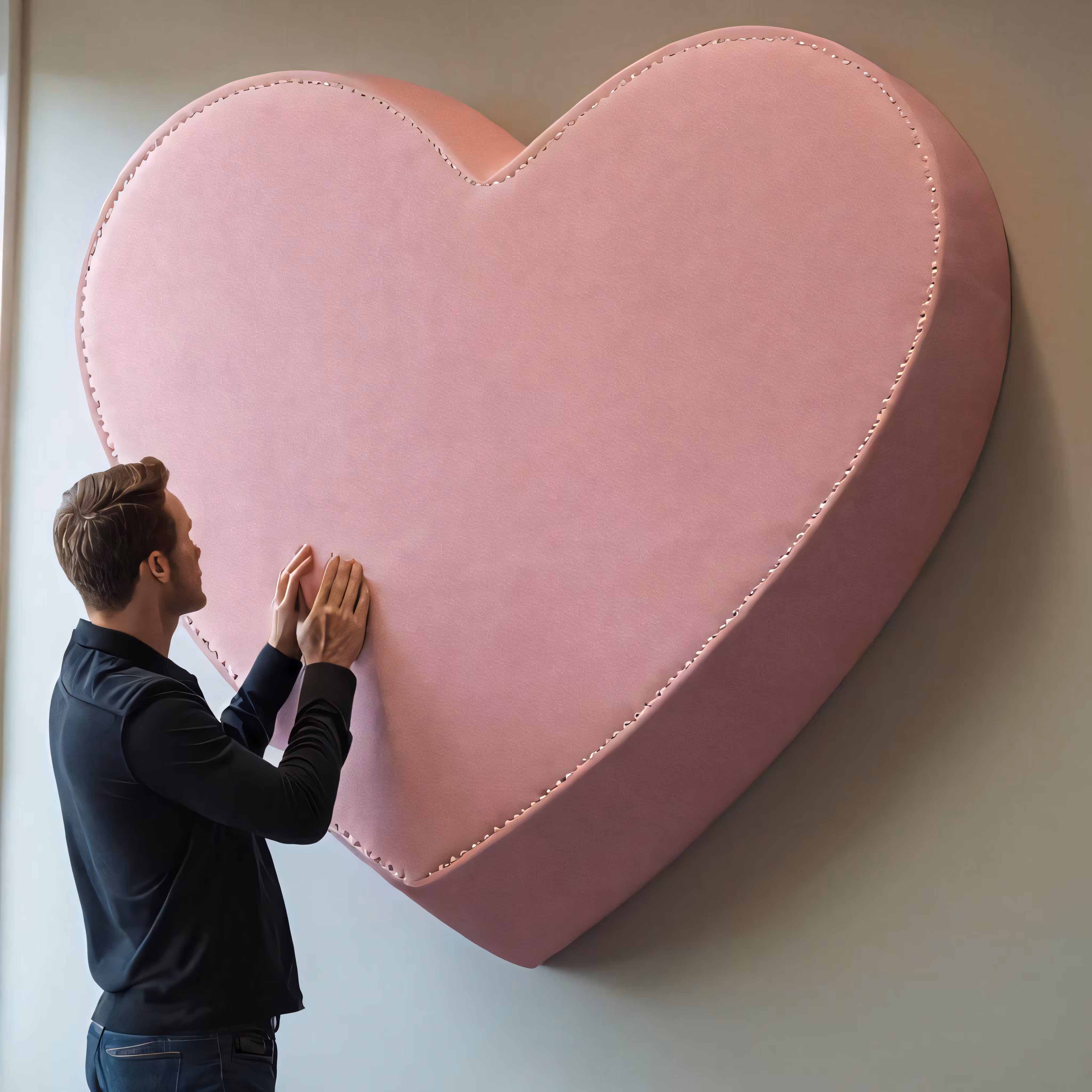 High resolution picture, free to use, a man touching a heart shaped object on the wall