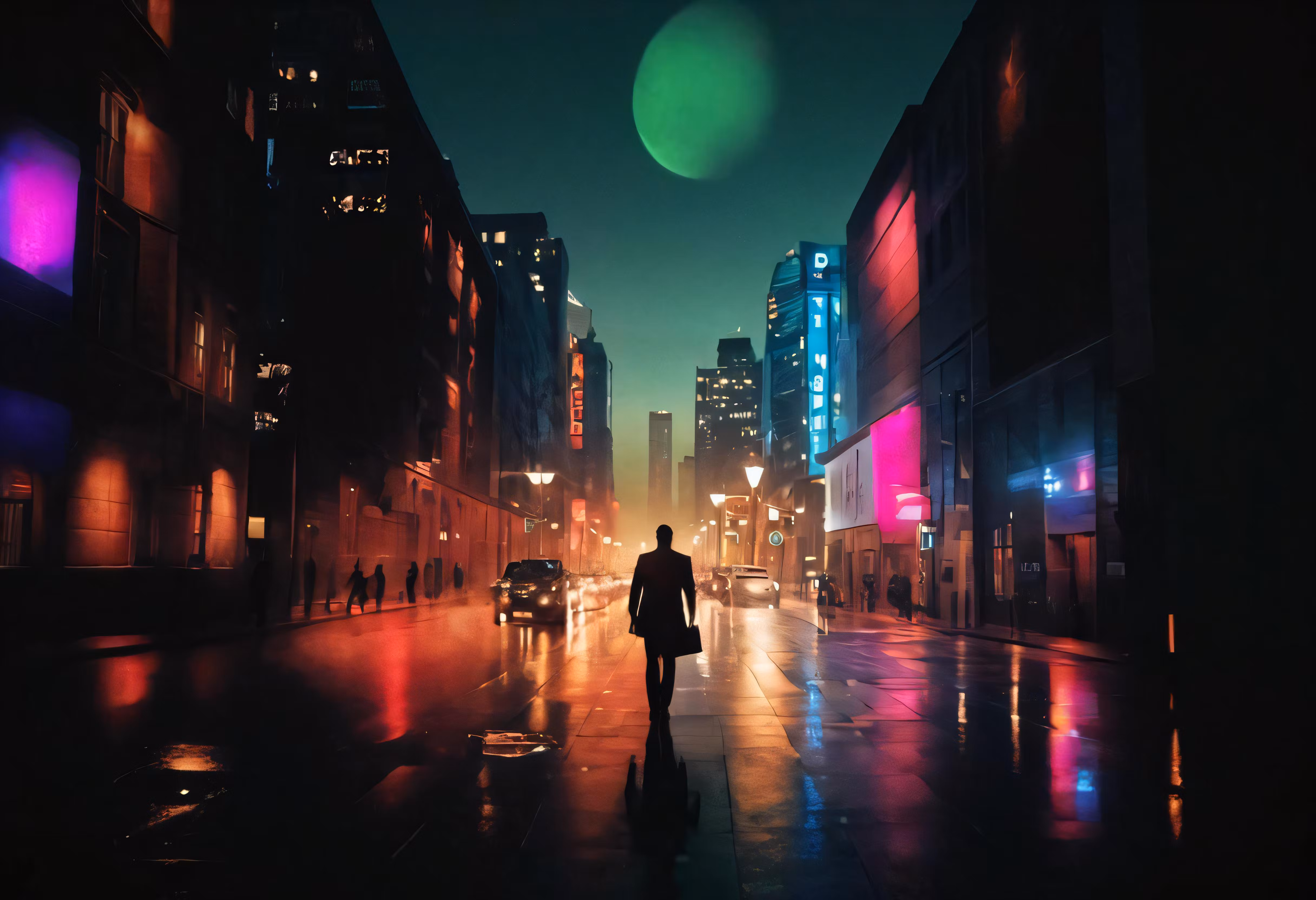High resolution picture, free to use, a man walking down a dark city street