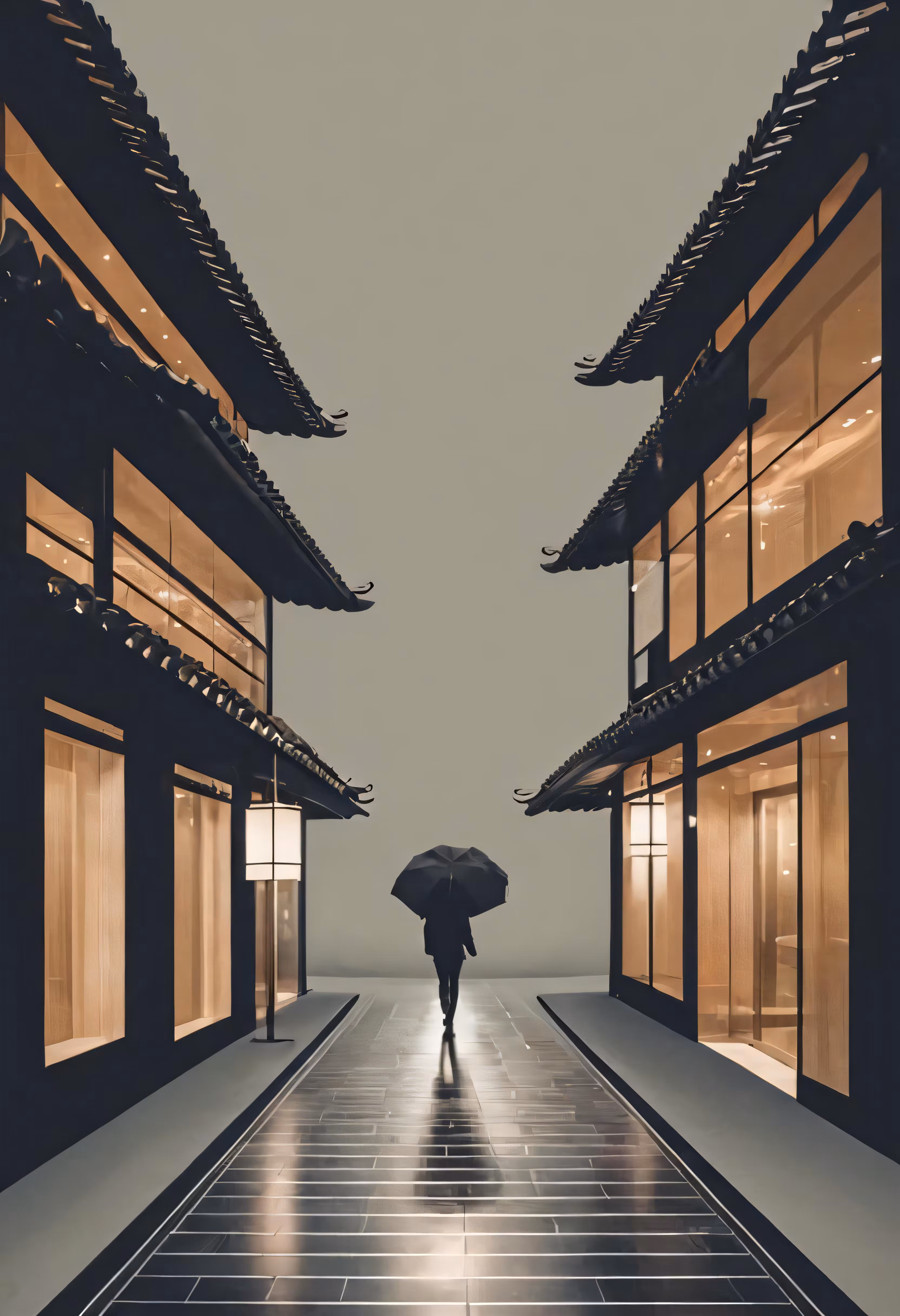 High resolution picture, free to use, a man walking down a walkway with an umbrella