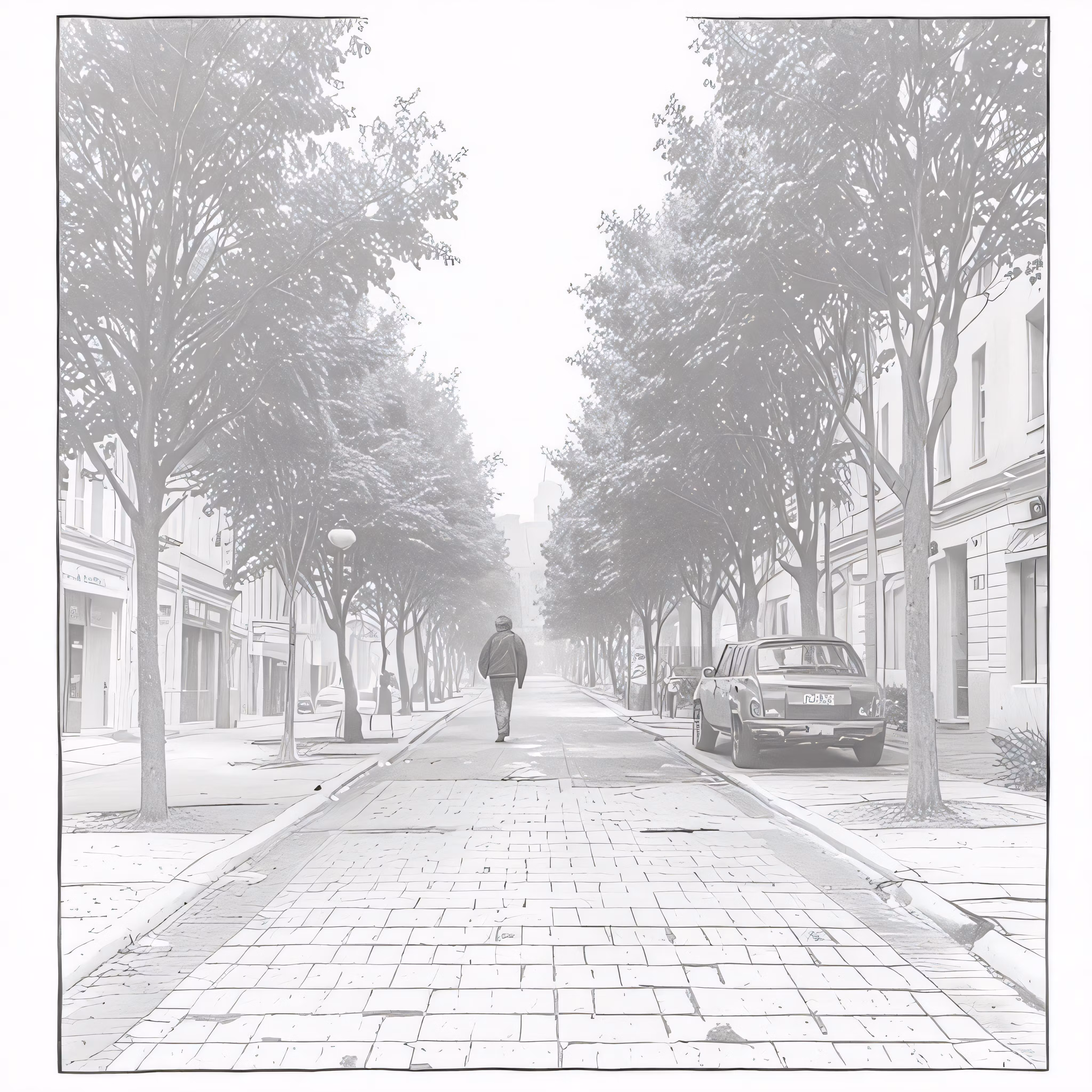 High resolution picture, free to use, a man walking down the middle of a street in winter