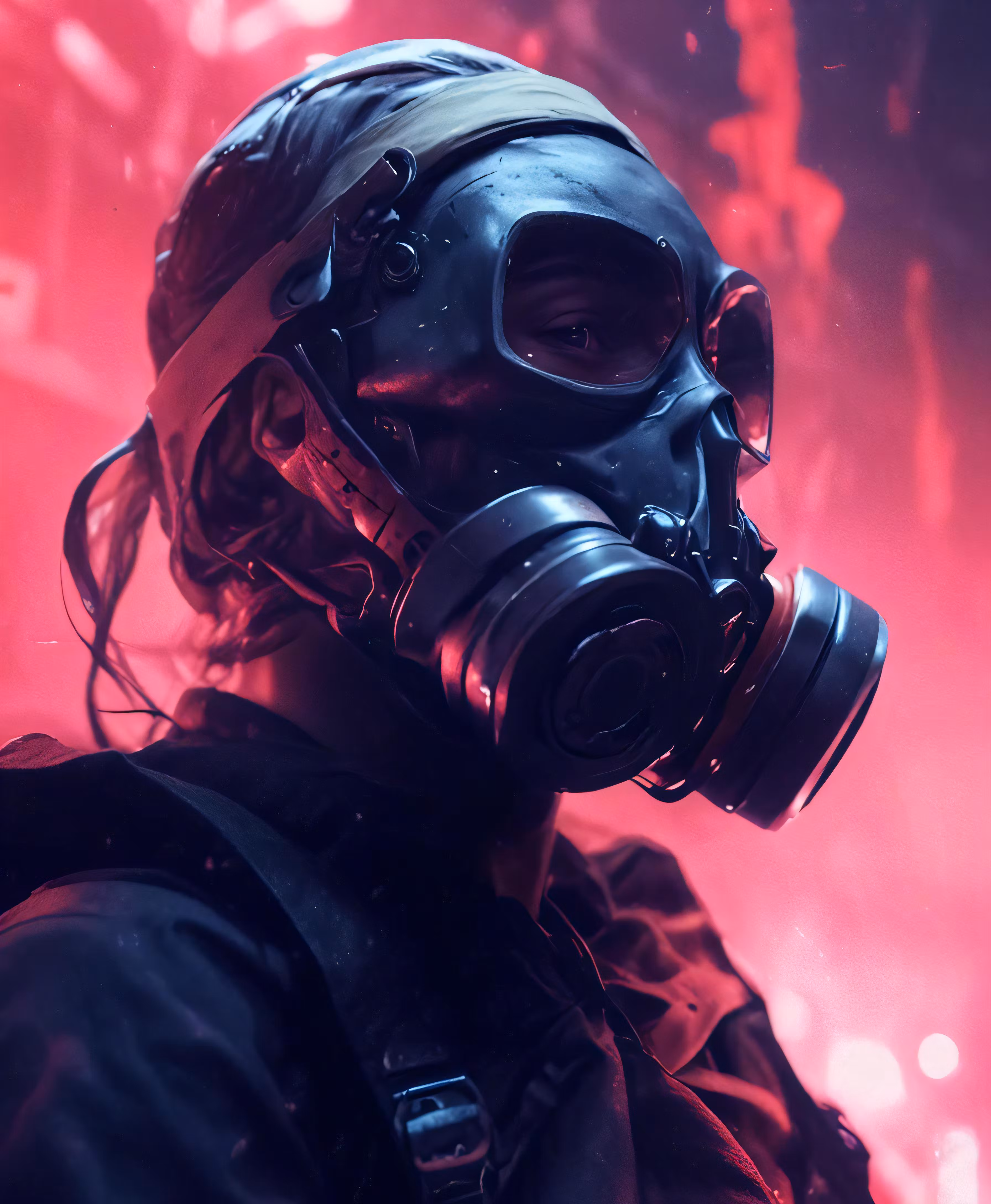 High resolution picture, free to use, a man wearing a gas mask looking to the side