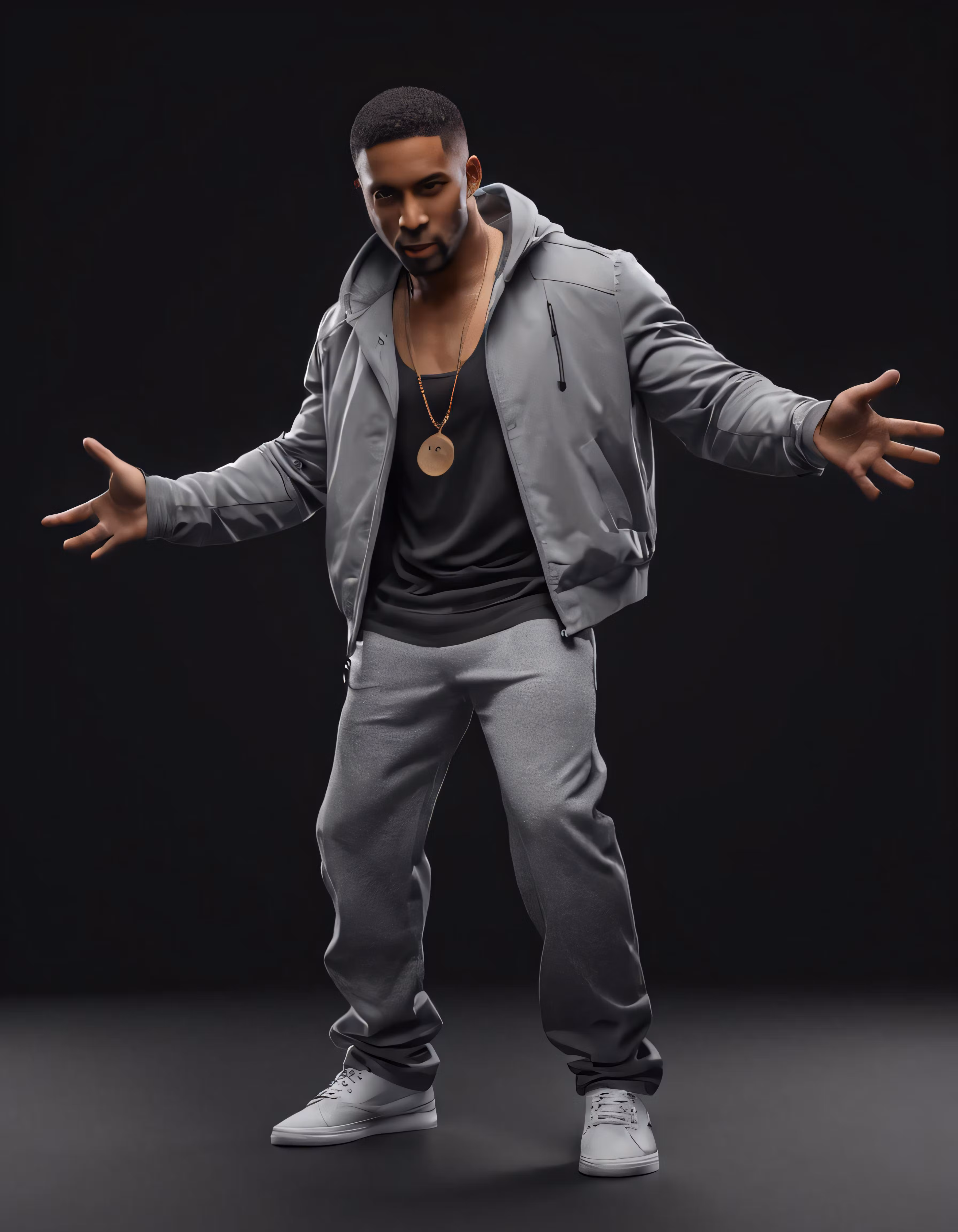 High resolution picture, free to use, a man wearing a jacket and sweatpants poses for a picture