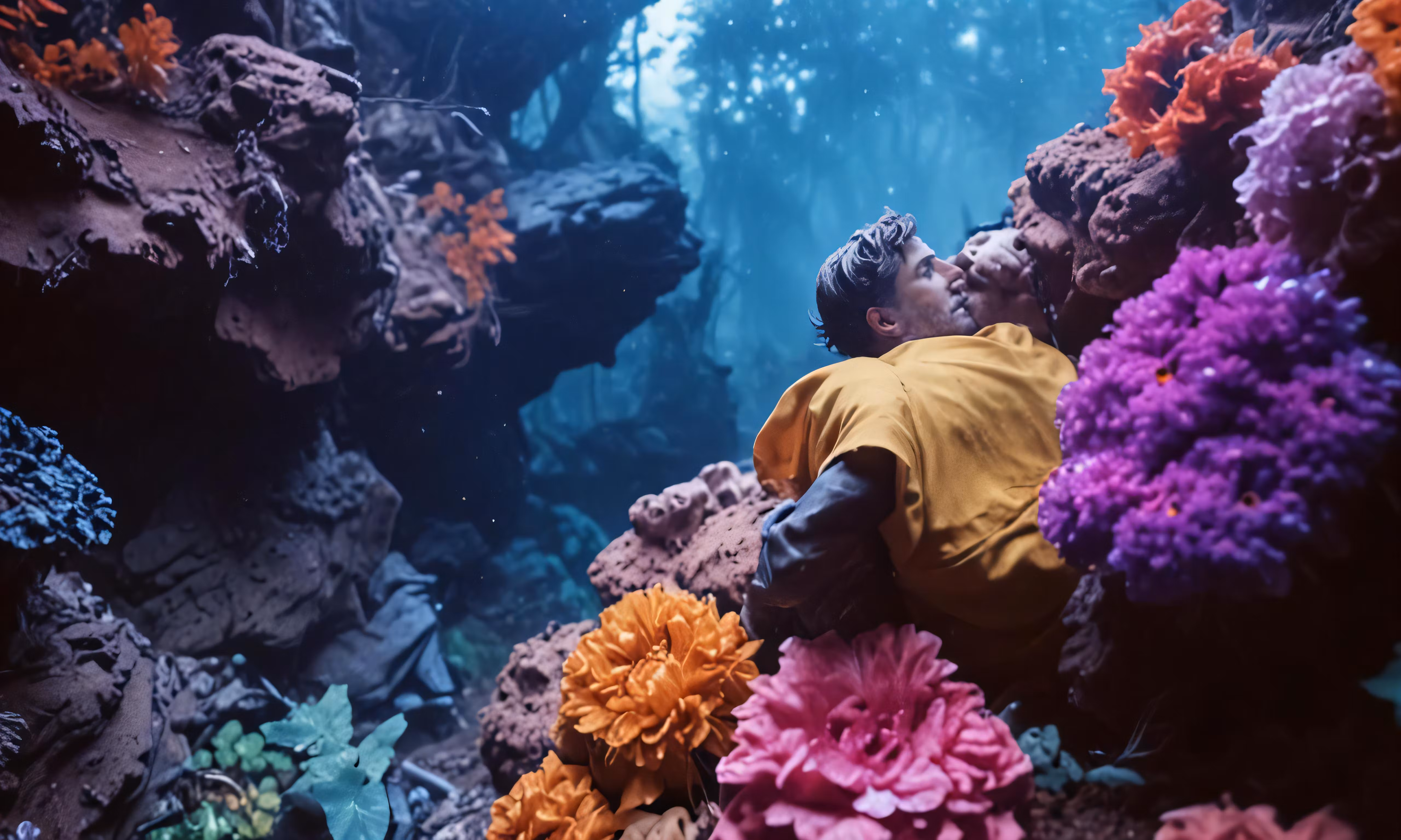 High resolution picture, free to use, a man who is standing next to a rock with seaweed