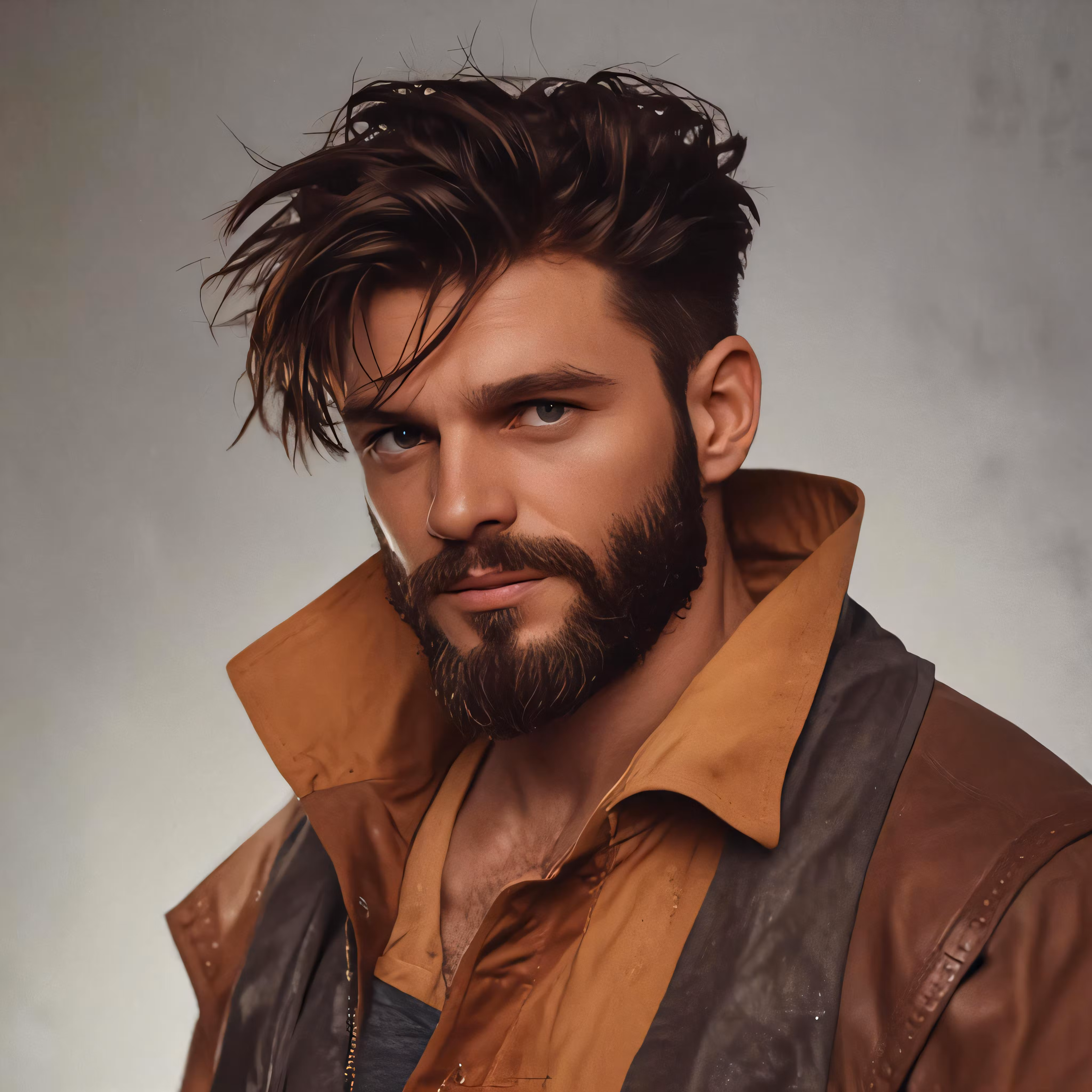 High resolution picture, free to use, a man with a beard and a leather jacket