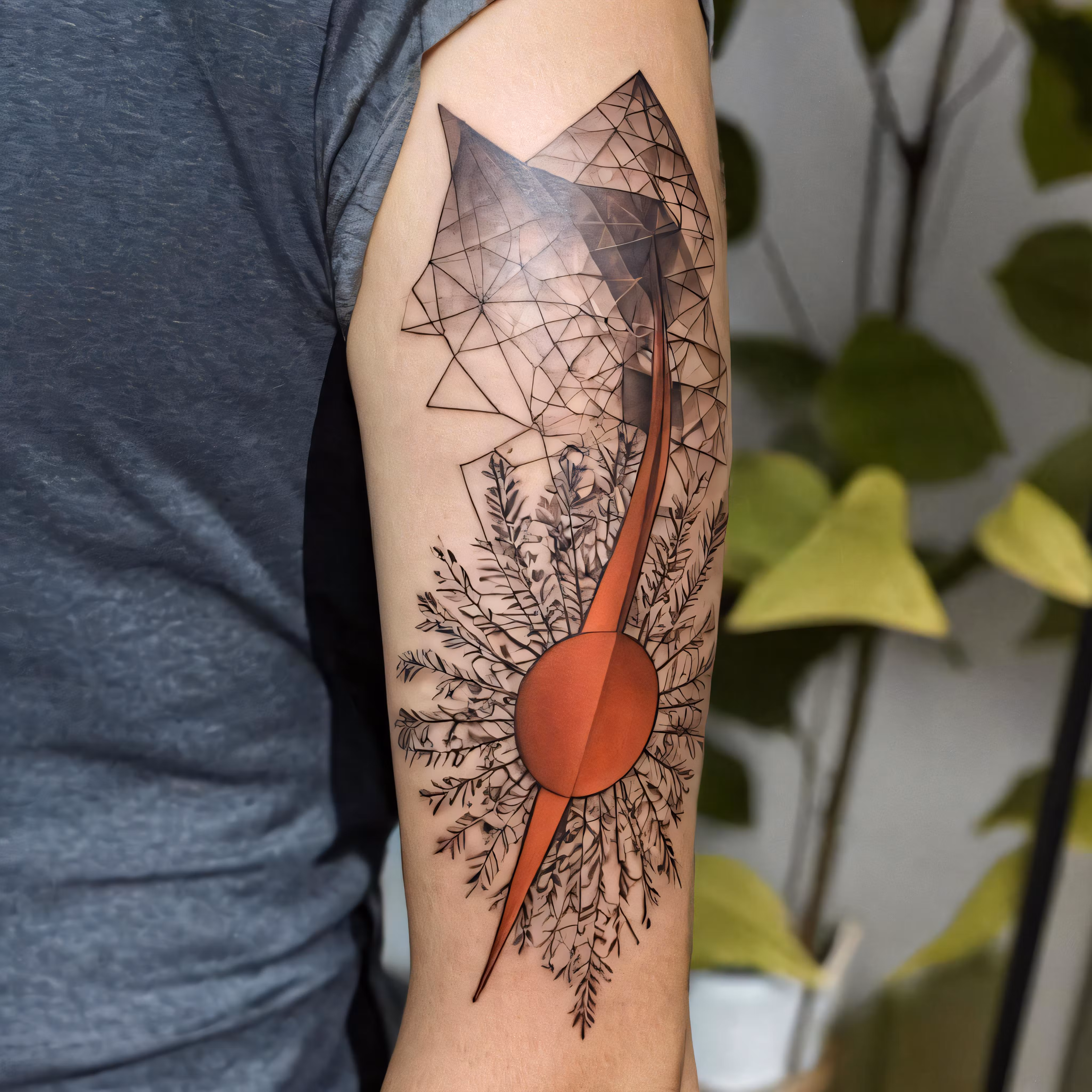 High resolution picture, free to use, a man with a forearm tattoo of a red arrow