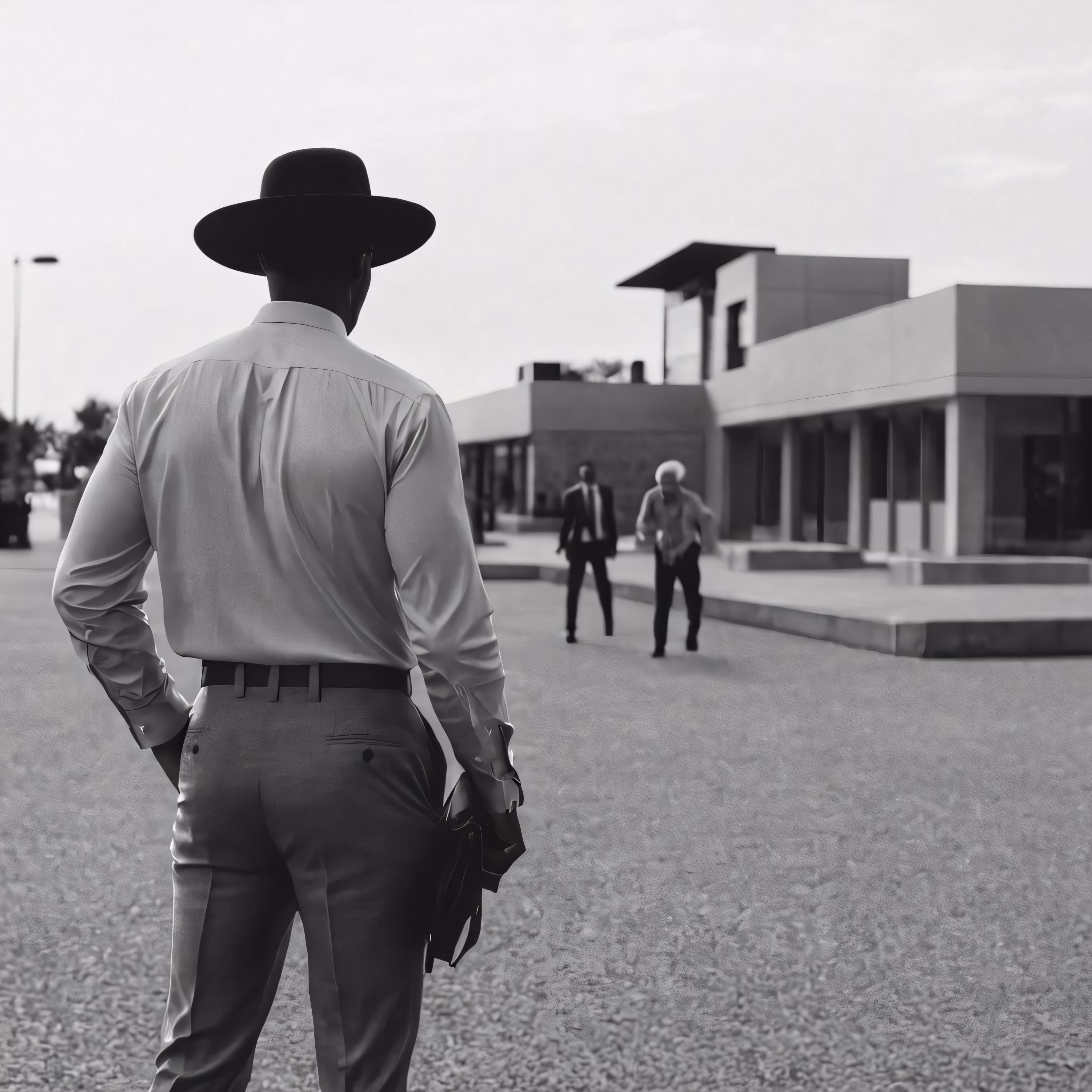 High resolution picture, free to use, a man with a hat and a suit stands outside