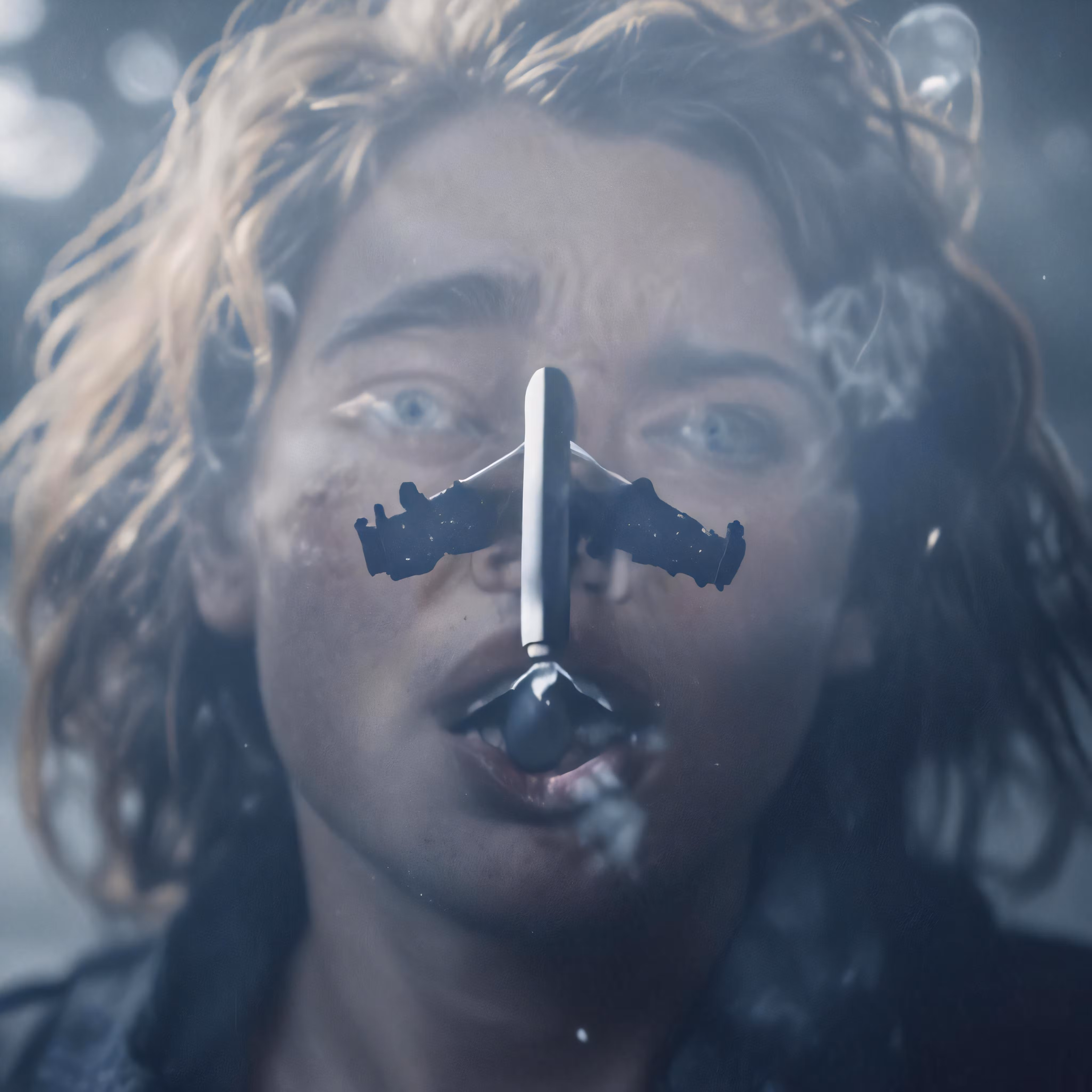 High resolution picture, free to use, a man with a large nosepiece standing next to a plane