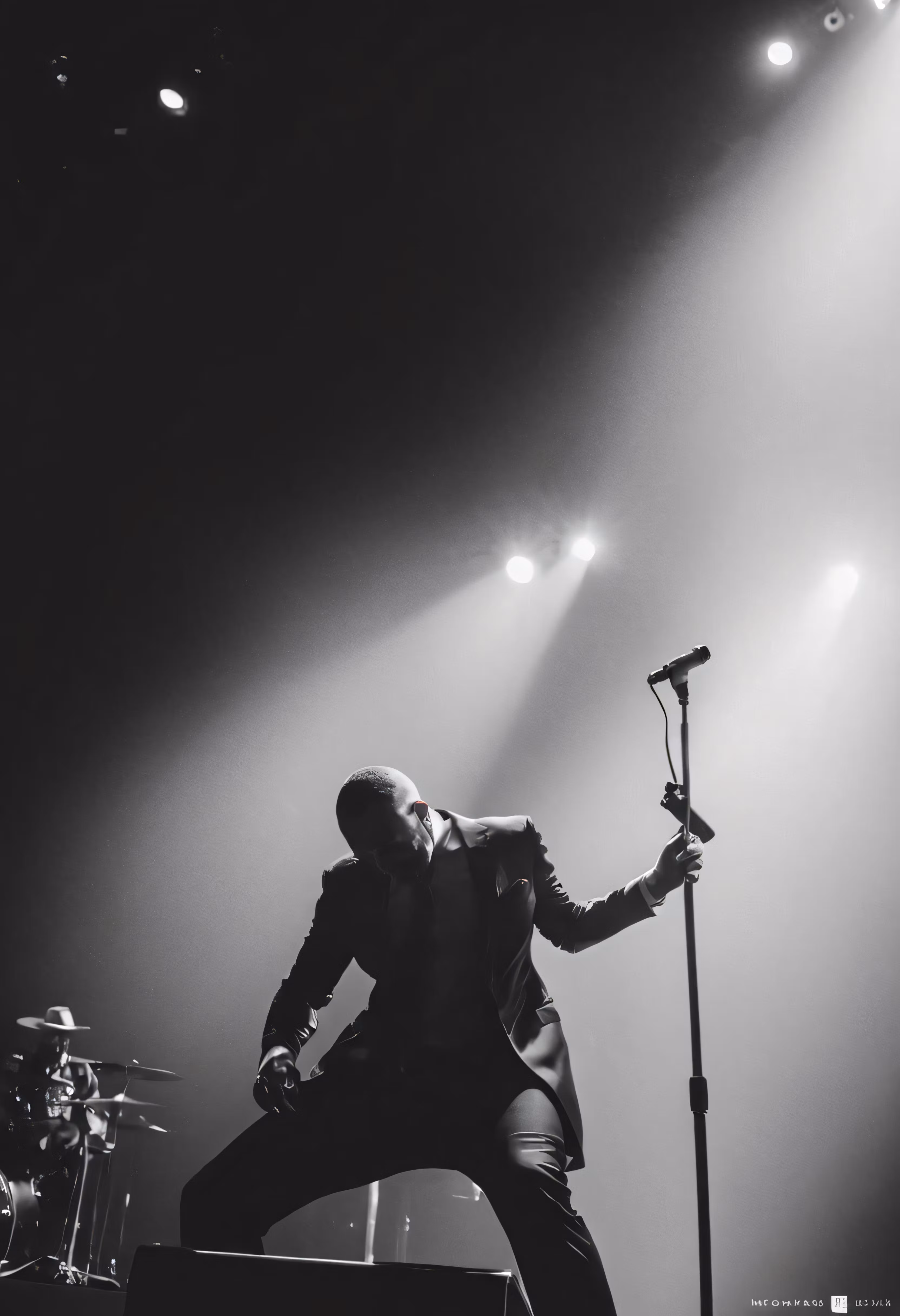 High resolution picture, free to use, a man with a microphone standing on stage